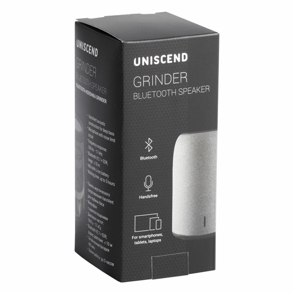 Беспроводная колонка Uniscend Grand Grinder, серая, 11,8х8,5х8,5 см, пластик