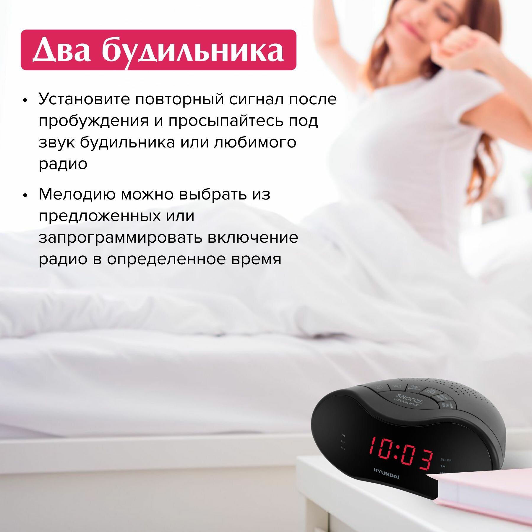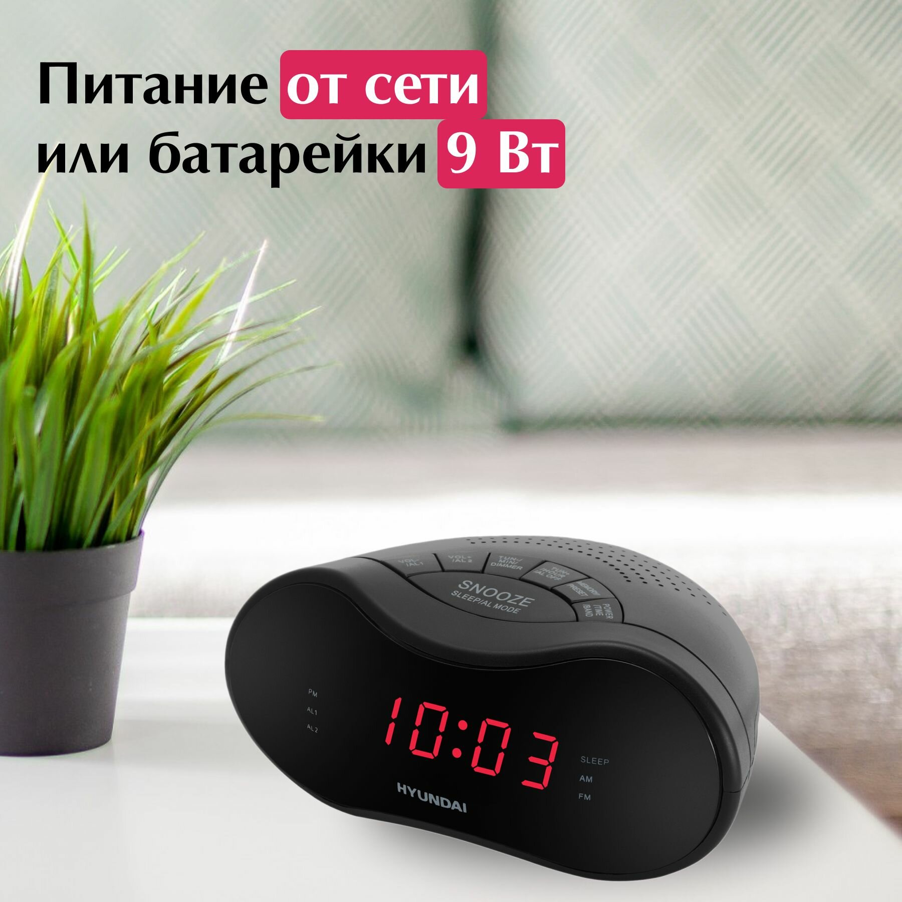 Радиобудильник Hyundai H-RCL160 черный LED подсв:красная часы:цифровые AM/FM