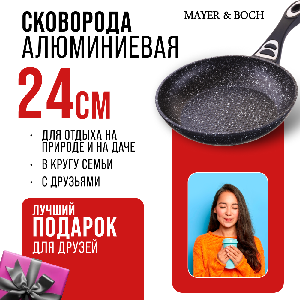 Сковорода с фиксированной ручкой Mayer&Boch, без крышки, алюминиевая, 24см
