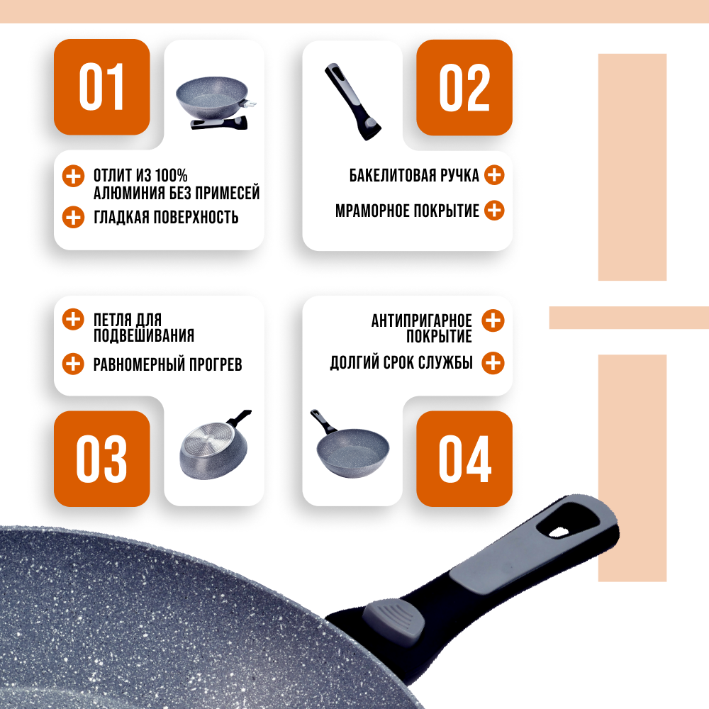 Сковорода алюминиевая Mayer&Boch 24 см с антипригарным мраморным покрытием 25622