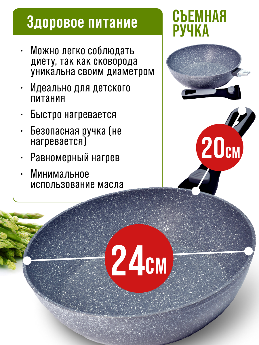 Сковорода 24 см с мраморным покрытием и съемной ручкой MAYER&BOCH 40405