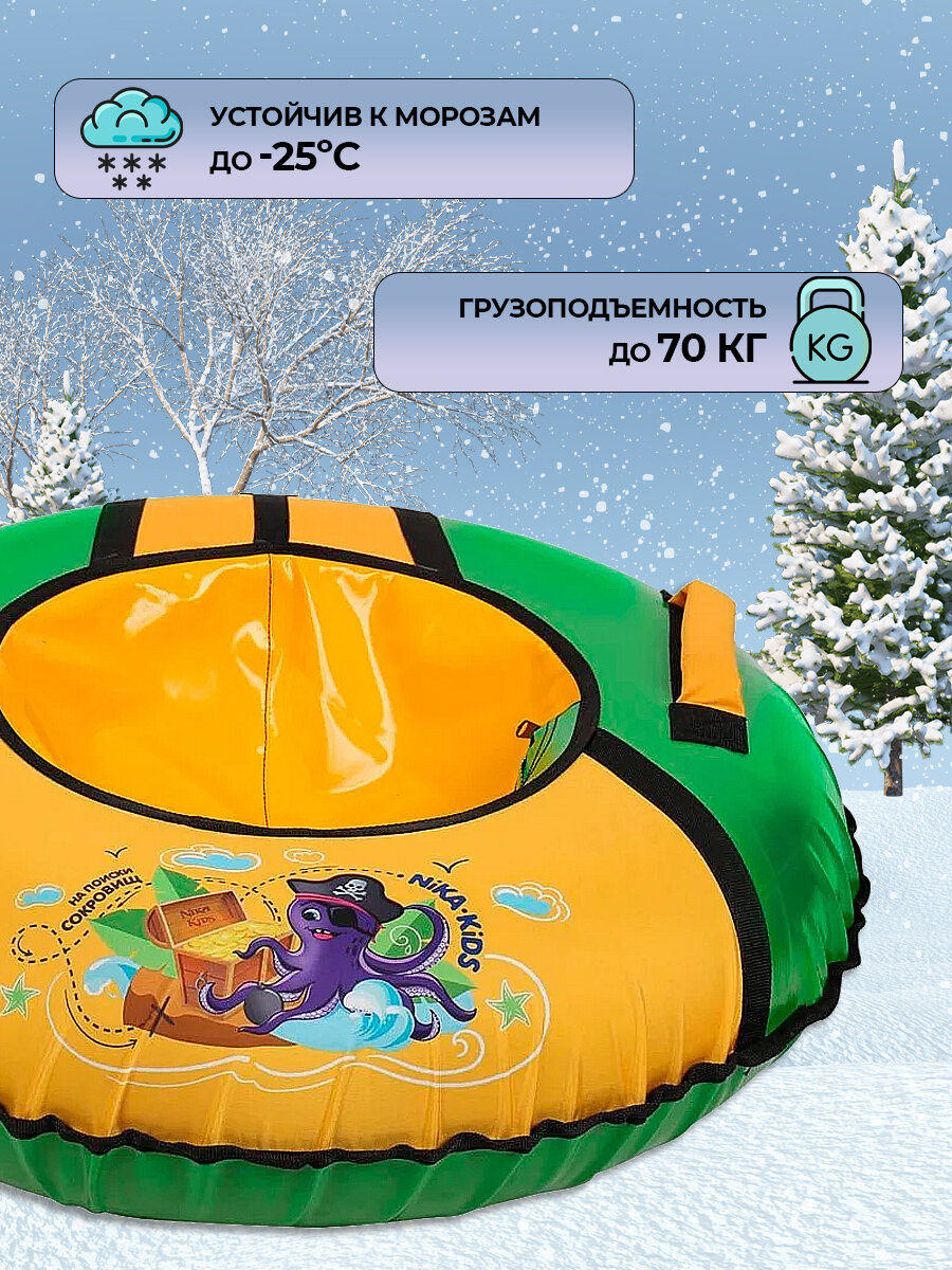 СохранитьСанки-ватрушка Nika, Сокровища, 70 см, 70 кг, с буксировочным тросом, с ручками, желто-зеленые, ТБ1КР-70/С2 интересное: