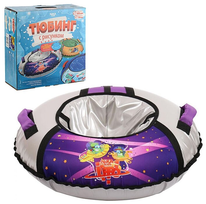 Санки-ватрушка Nika, Пришельцы, 85 см, 90 кг, с буксировочным тросом, с ручками, принт, светоотраж элементы, ТБ3К-85/П2