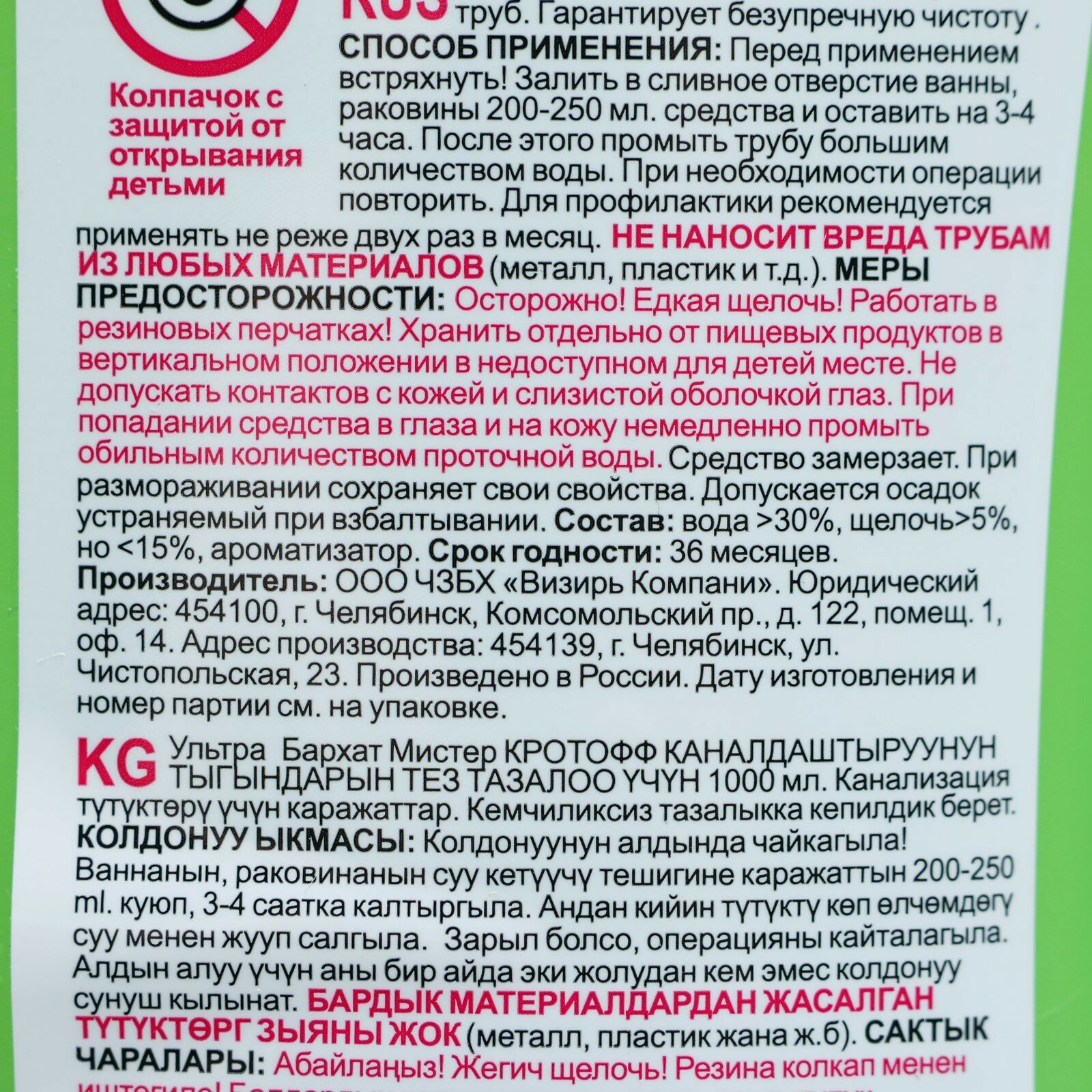Ultra Barhat Mister Krotoff, Средство для очистки канализационных труб, 1000 мл
