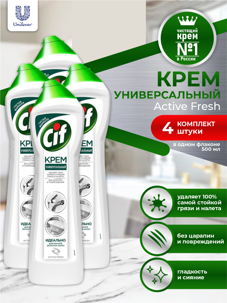 Купить CIF Чистящее средство Крем Актив Фреш для кухни и ванной 500 мл. х 4 шт.