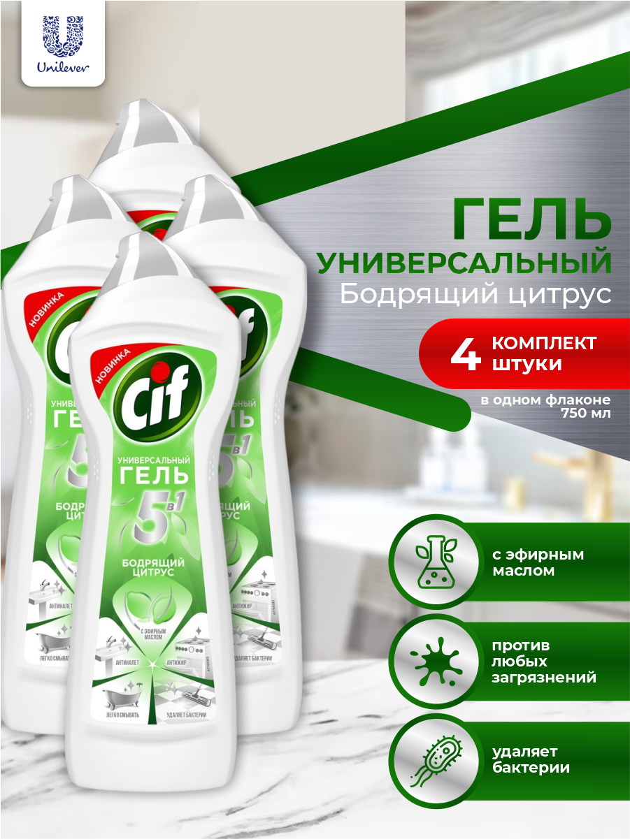 Купить CIF Чистящий гель для всех поверхностей Бодрящий цитрус 750 мл. х 4 шт.
