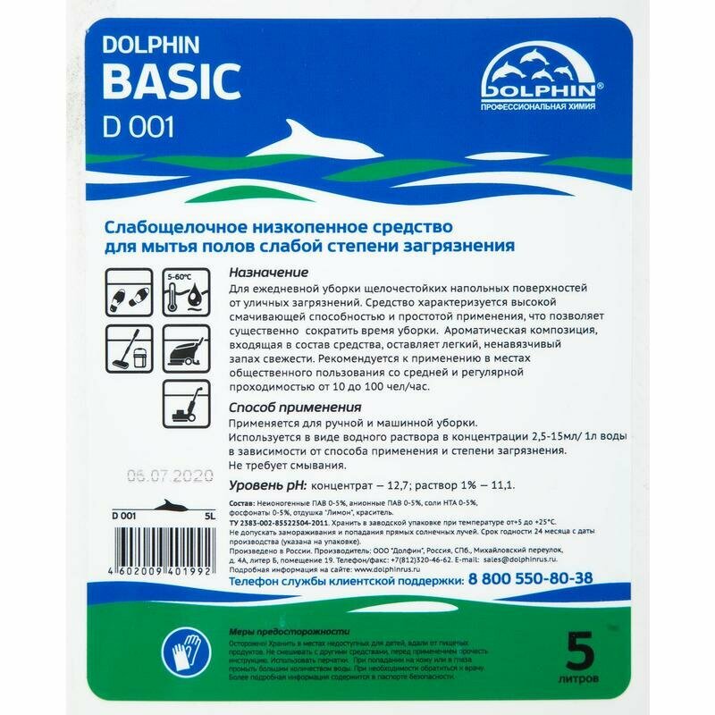 Профессиональное средство для мытья полов Dolphin Basic 5 л (артикул производителя D001-5)