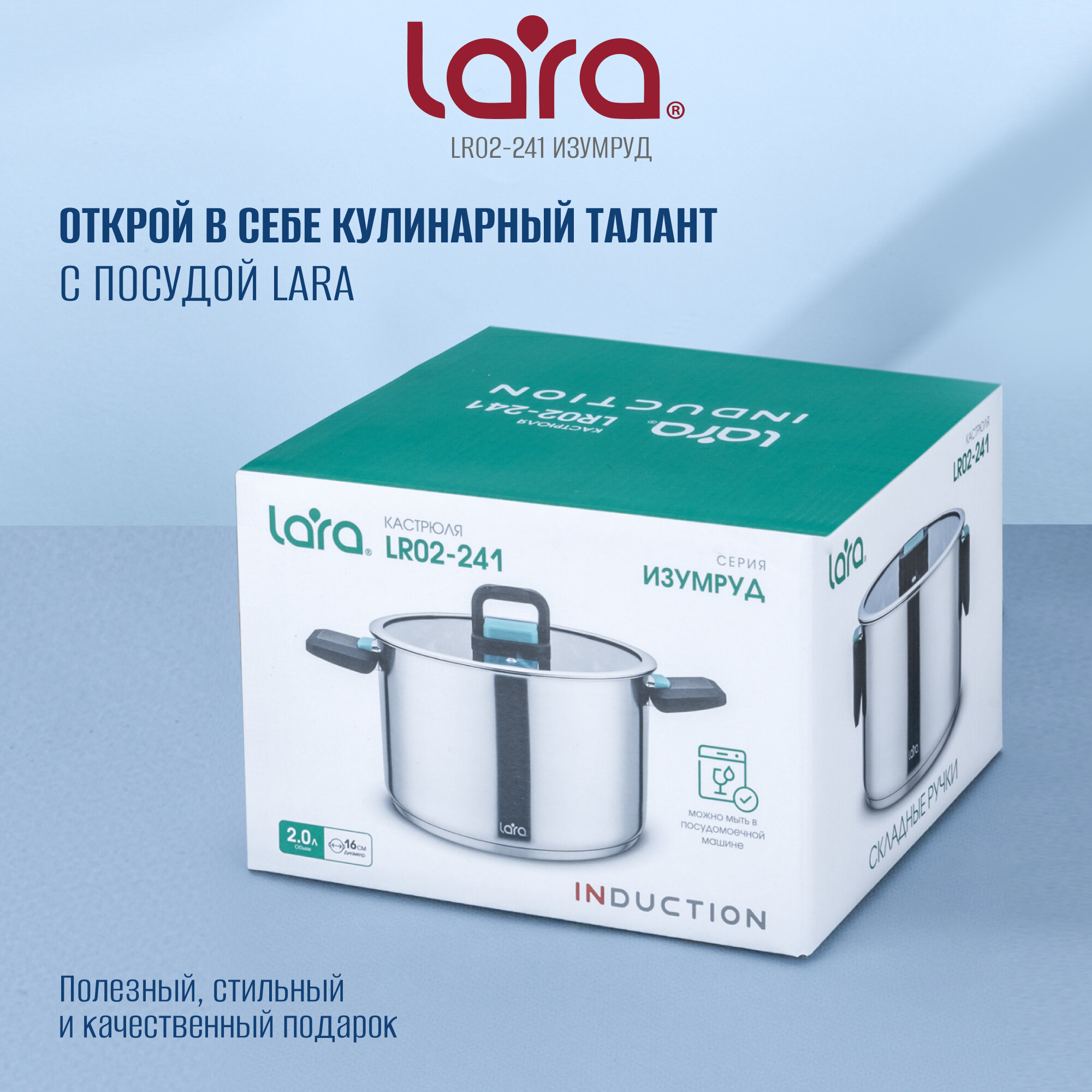 Кастрюля с крышкой LARA LR02-33 3.6л, нержавеющая сталь, стекло