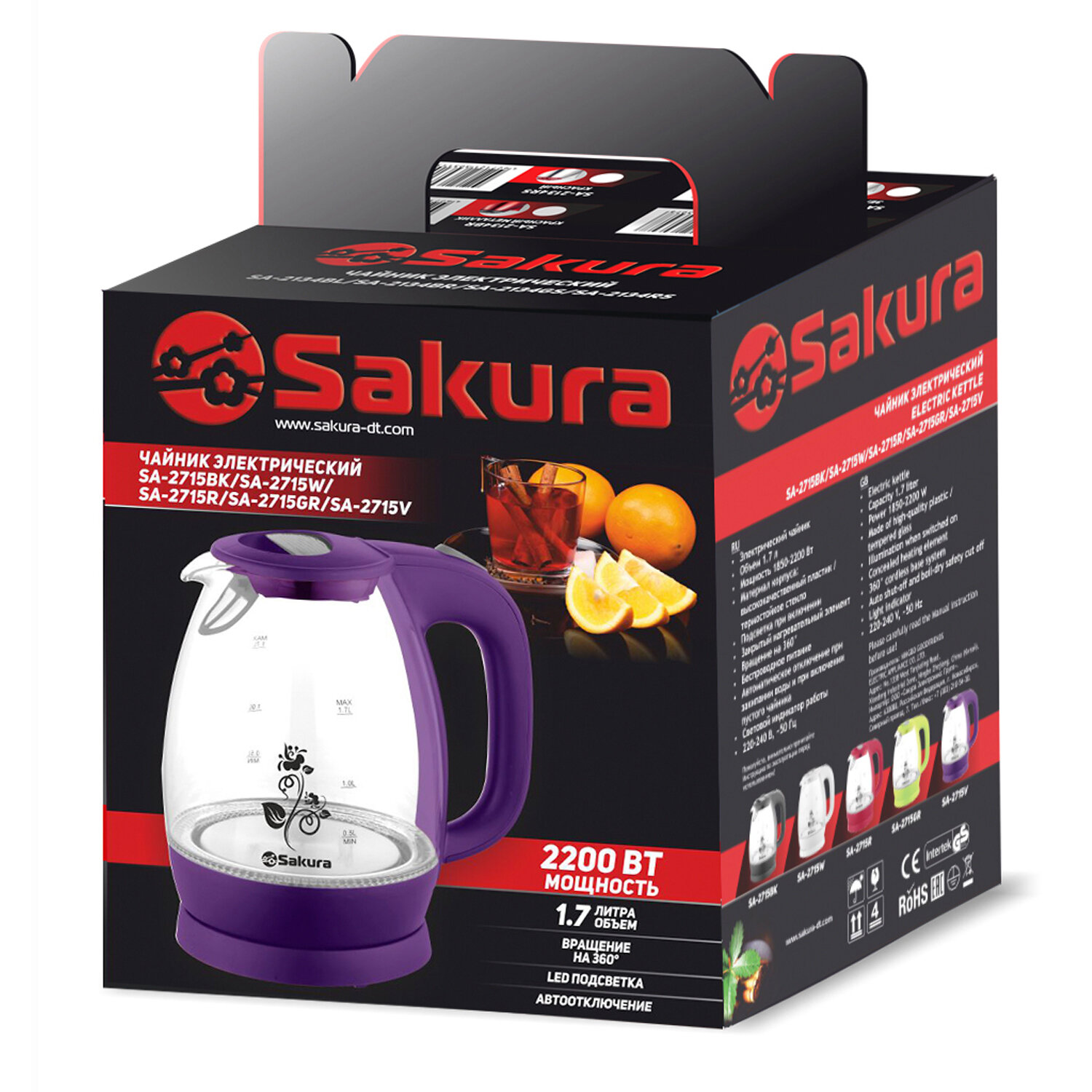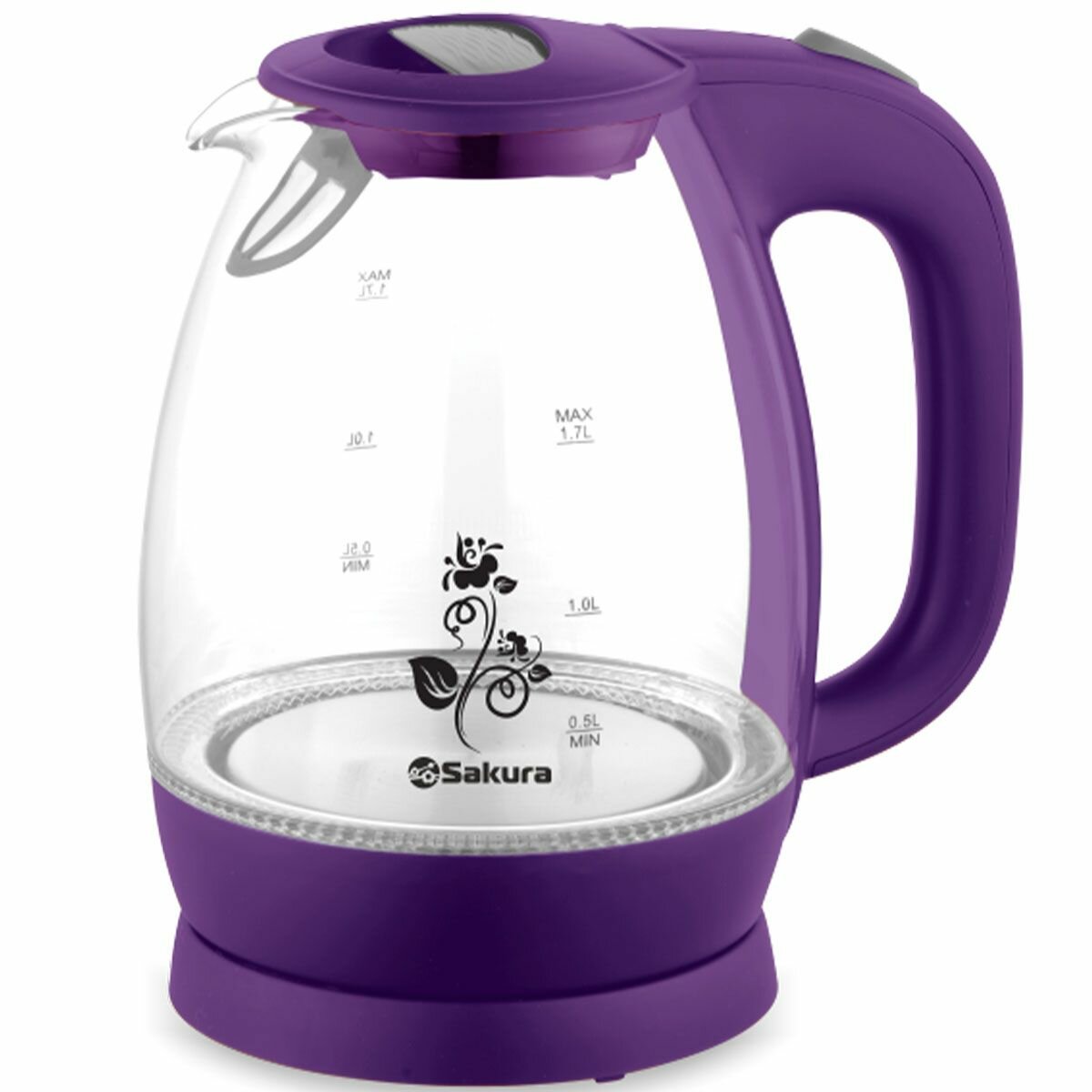 Чайник электрический Sakura SA-2715V, стекло, 1.7 л, 2200 Вт, пурпурный