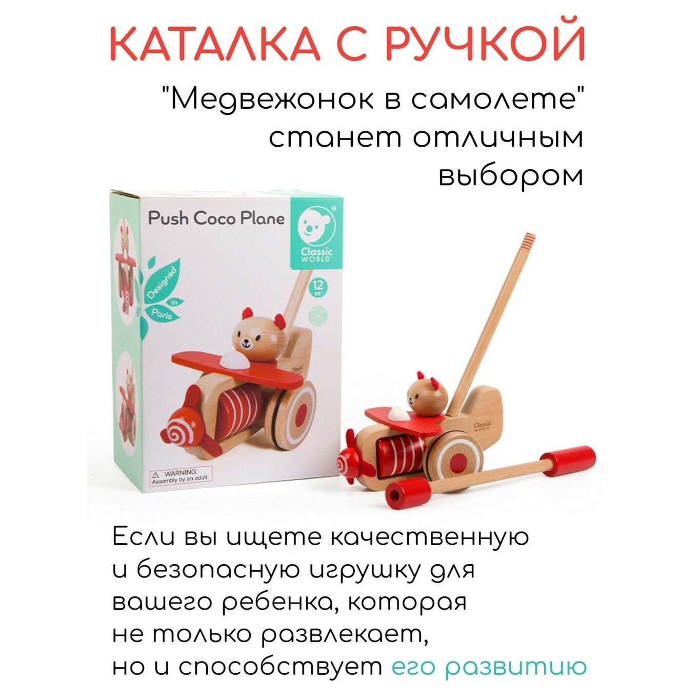Каталка с ручкой Classic World "Медвежонок в самолете" интересное: