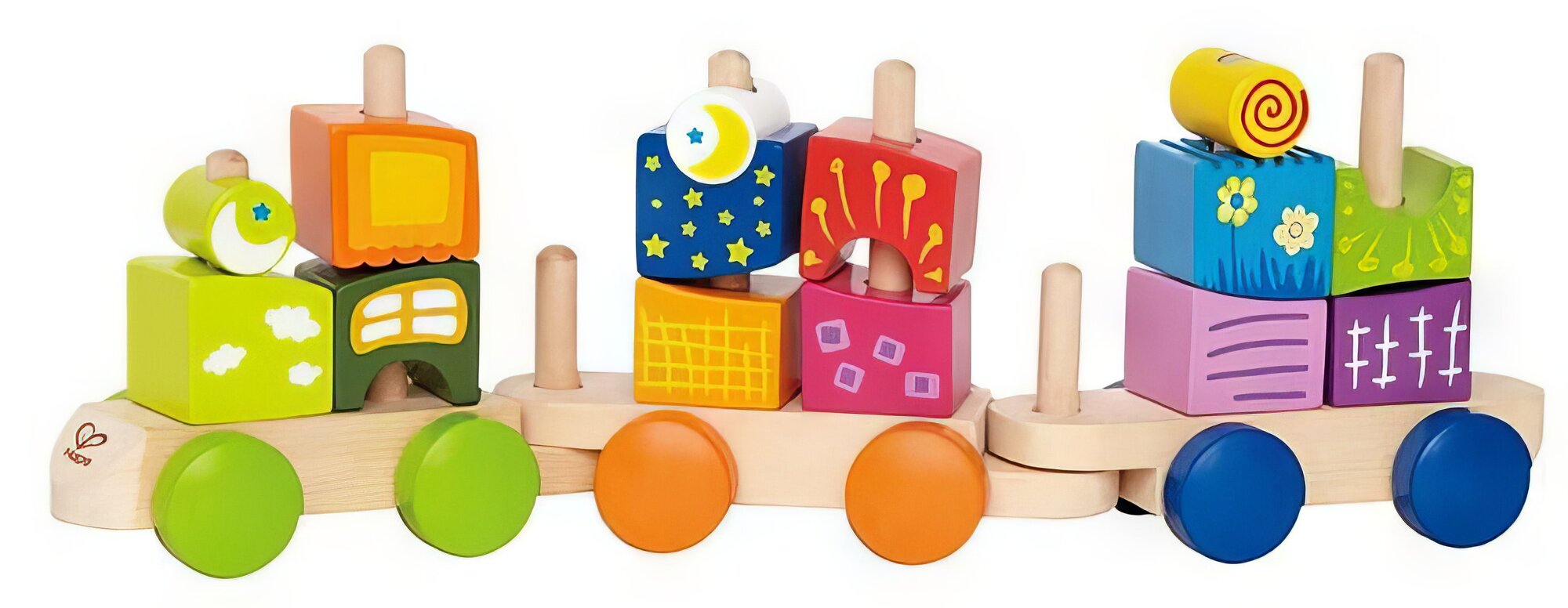 Каталка-игрушка Hape Fantasia Blocks Train (E0417), бежевый/зеленый/оранжевый