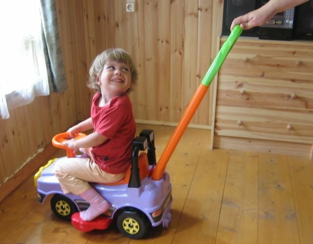 | Отзыв: | Это очень крутая каталка! В использовании уже больше 6 лет, начиная первым ребенком до 4 лет, правда в 4 года она под весом уже ездила со скрипом. Сейчас ездит второй ребенок.