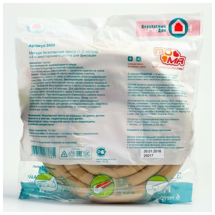 Пома Мягкая безопасная лента с дополнительным набором наклеек, длина 2 м