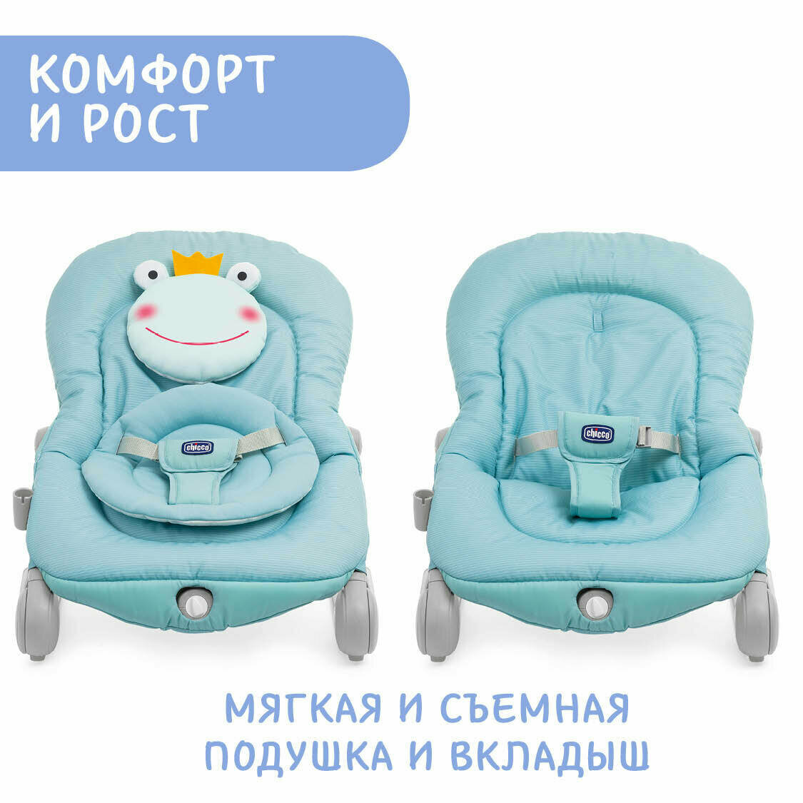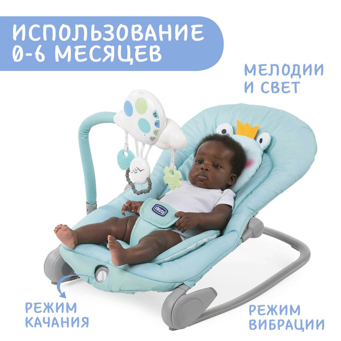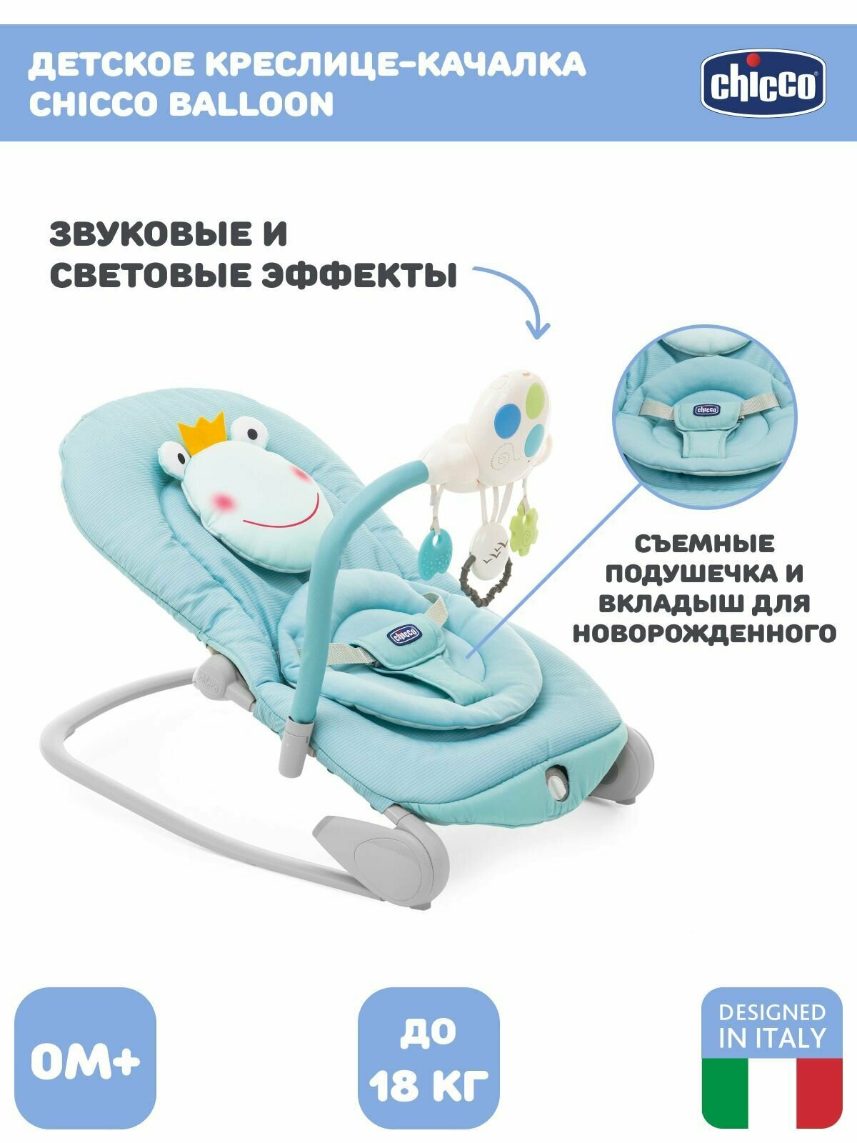 Купить Креслице-качалка шезлонг для новорожденных CHICCO BALLOON FROGGY 0-18 кг,бирюзовая лягушка