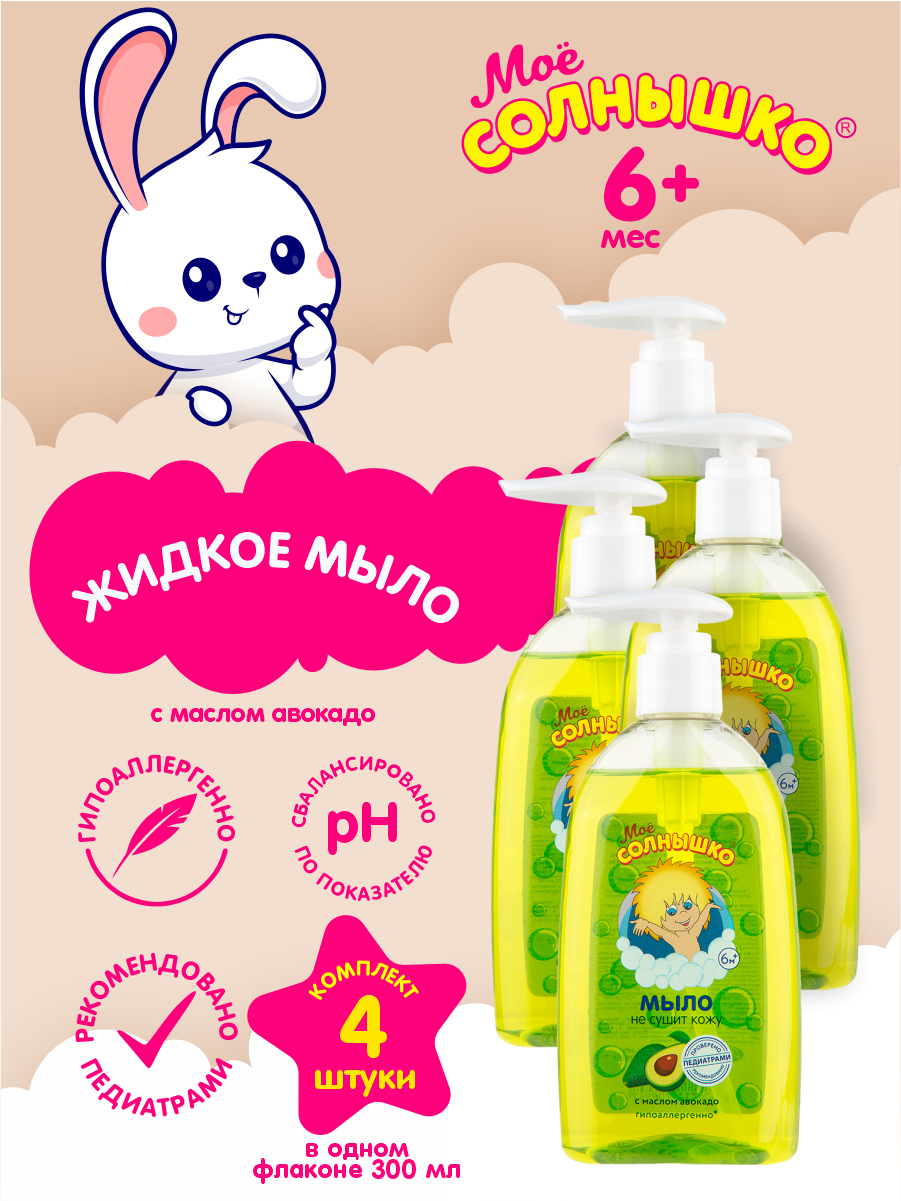 Купить Мыло жидкое с маслом авокадо Мое Солнышко 300 мл. х 4 шт.