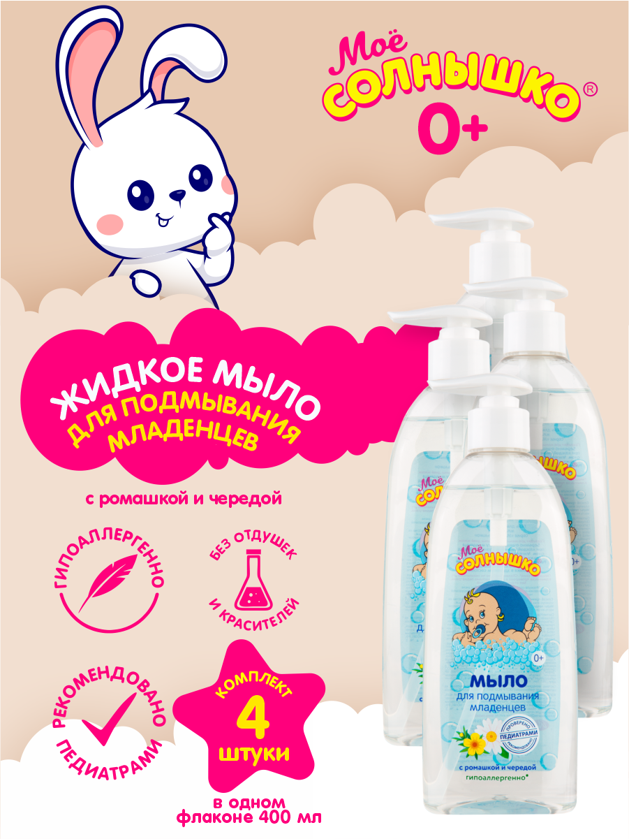 Купить Мыло жидкое для подмывания младенцев Мое Солнышко 400 мл. х 4 шт.