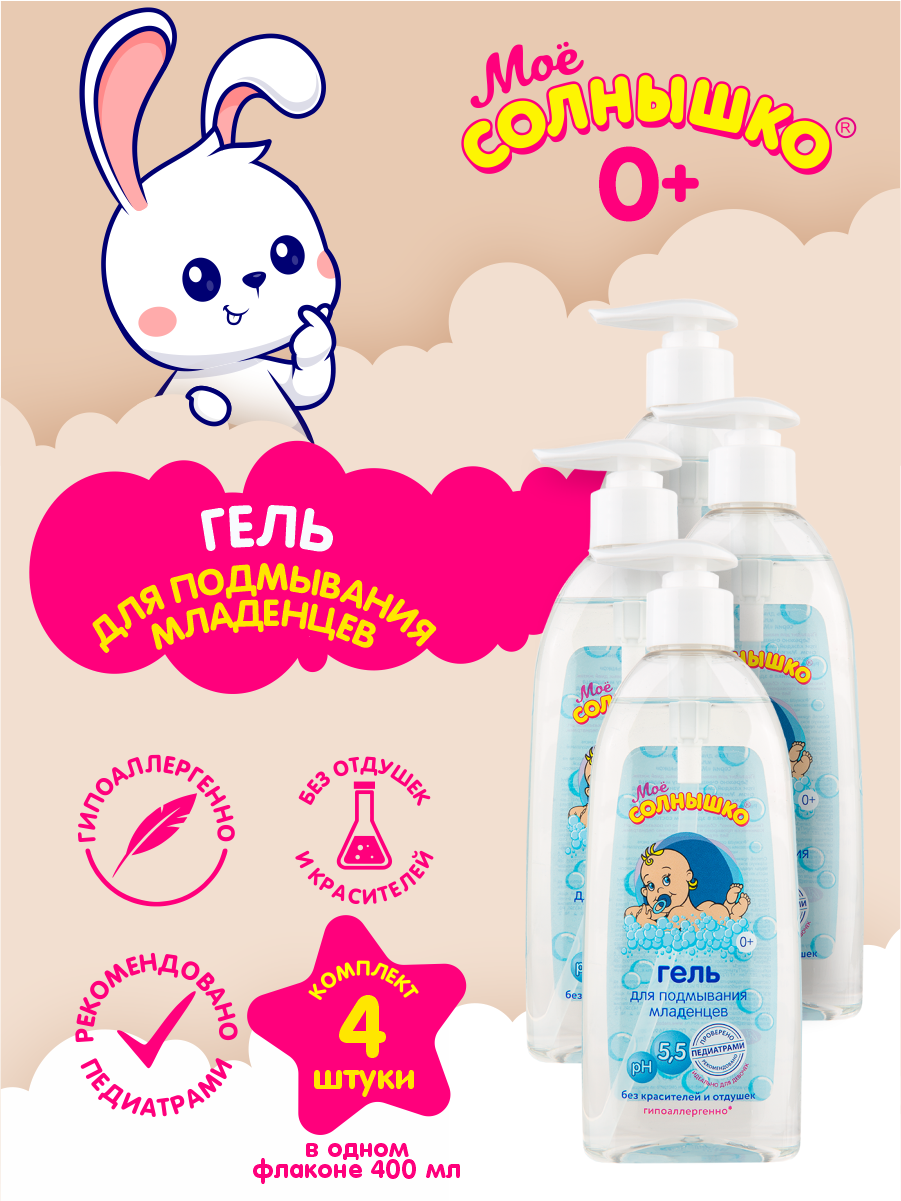 Моё Солнышко Гель для подмывания младенцев 0+, 400 мл, 4 шт