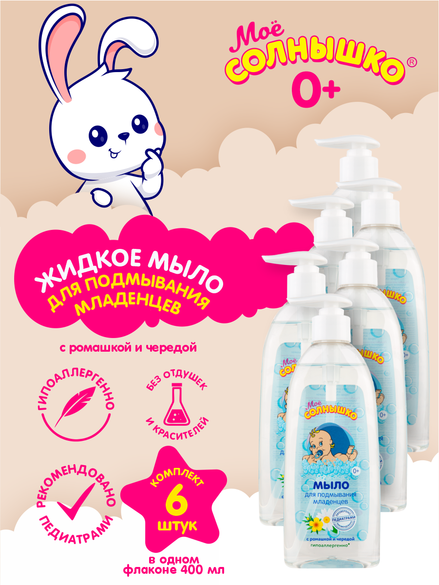 Купить Мыло жидкое для подмывания младенцев Мое Солнышко 400 мл. х 6 шт.
