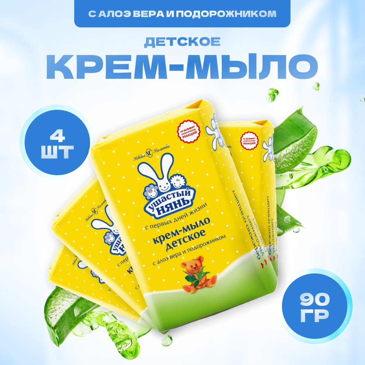 Крем-мыло детское Ушастый нянь с алоэ вера и подорожником 4 штуки по 100 г