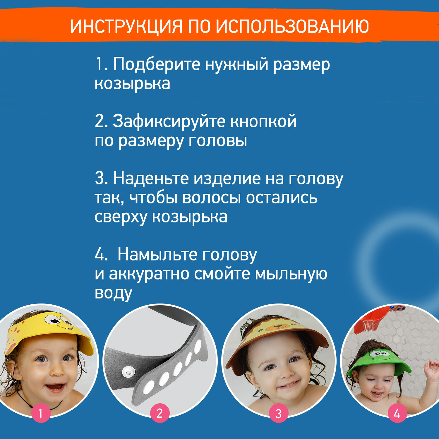 Шапочка козырек регулируемый детский защитный для купания мытья головы детей, малышей, младенцев Halsa
