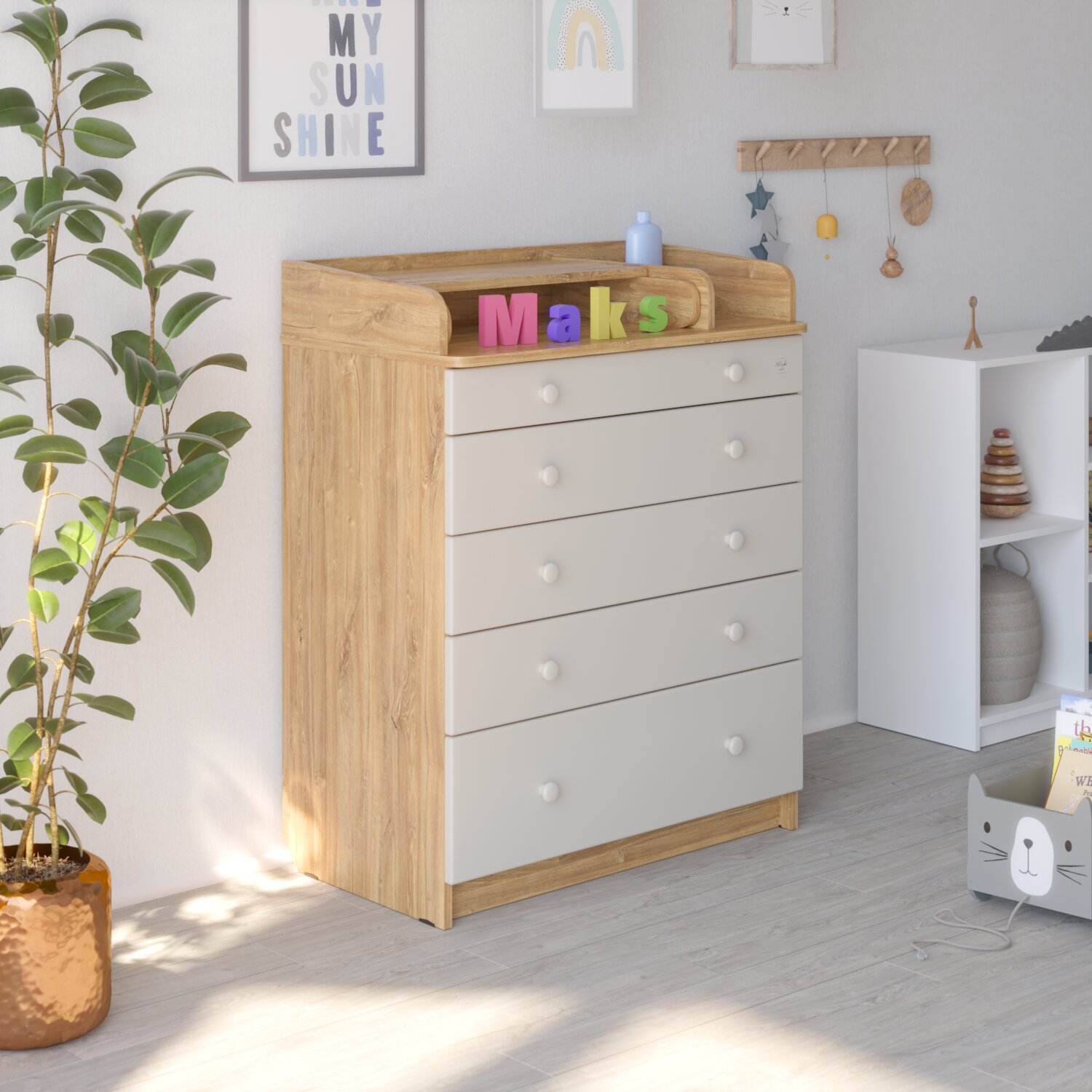 Пеленальный комод Maks, 5 ящиков, Сосна касцина/Белый софт