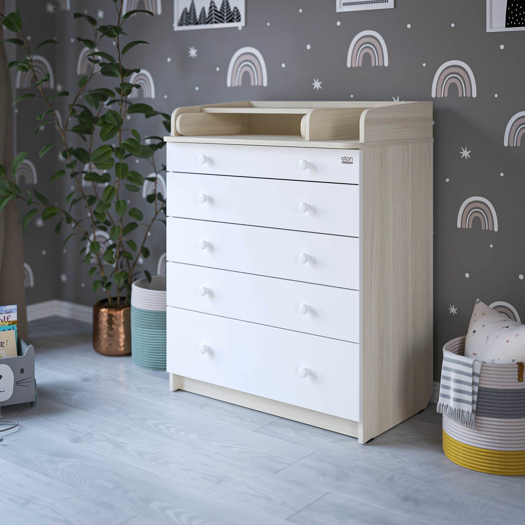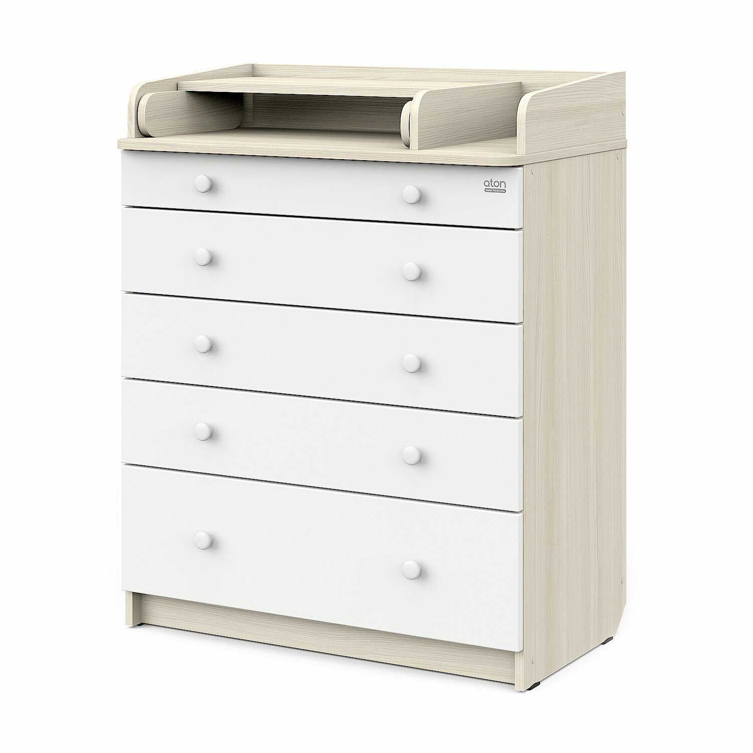 Комод пеленальный Атон Maks 5 ящиков, Древесина белая/белый