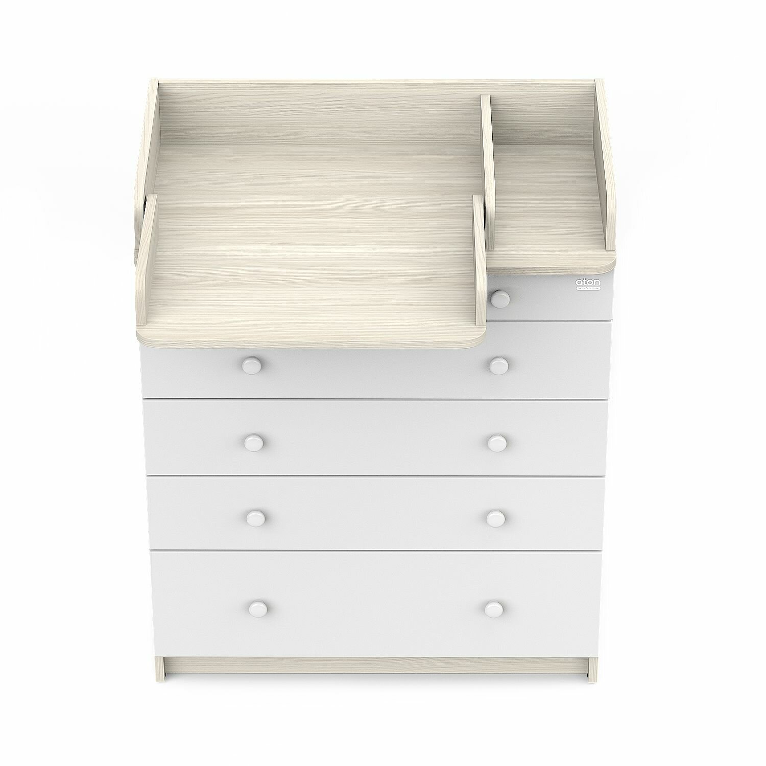 Комод пеленальный aton LEO, 5 ящиков с органайзером, шимо светлый/белый