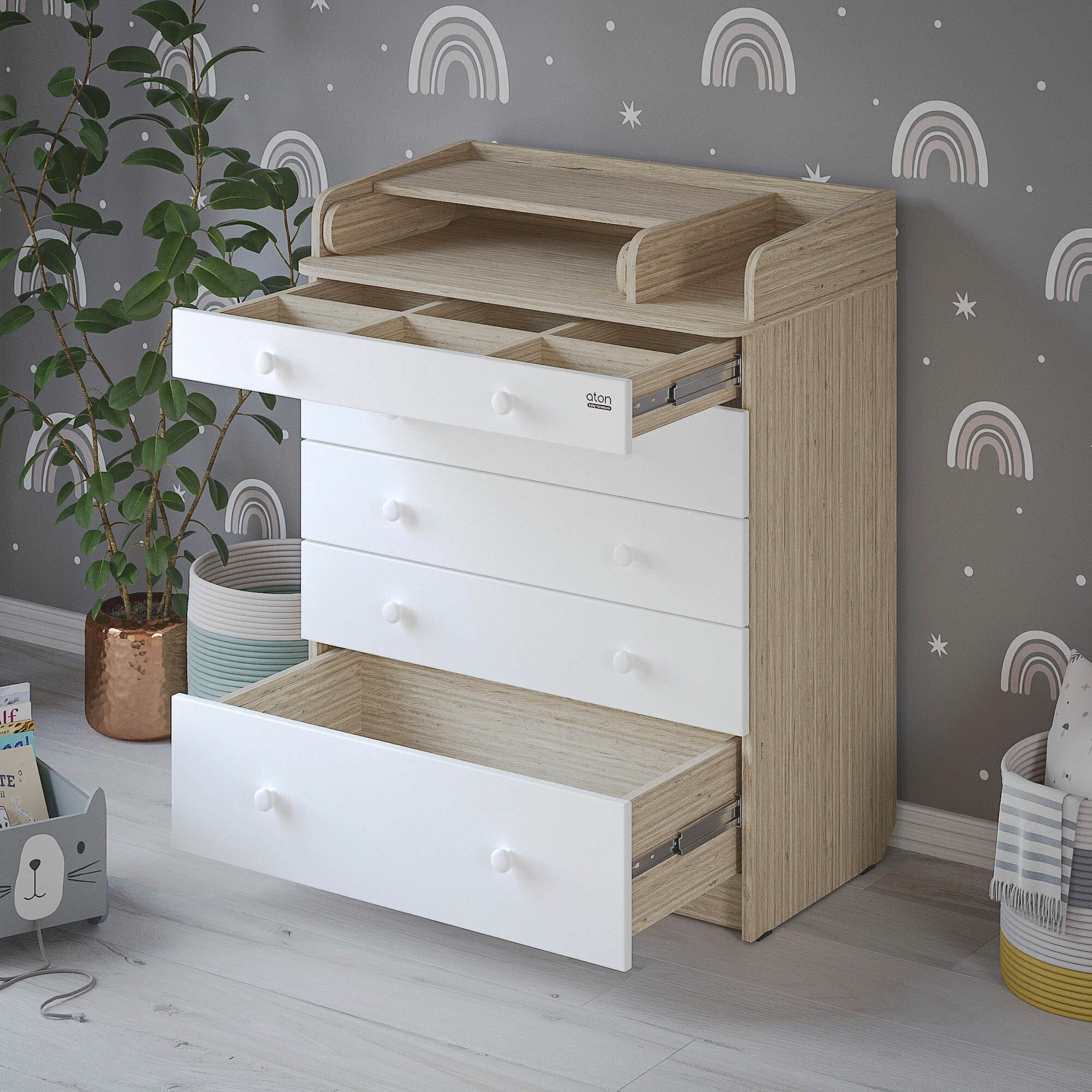 Комод пеленальный aton LEO, 5 ящиков с органайзером, дуб сонома
