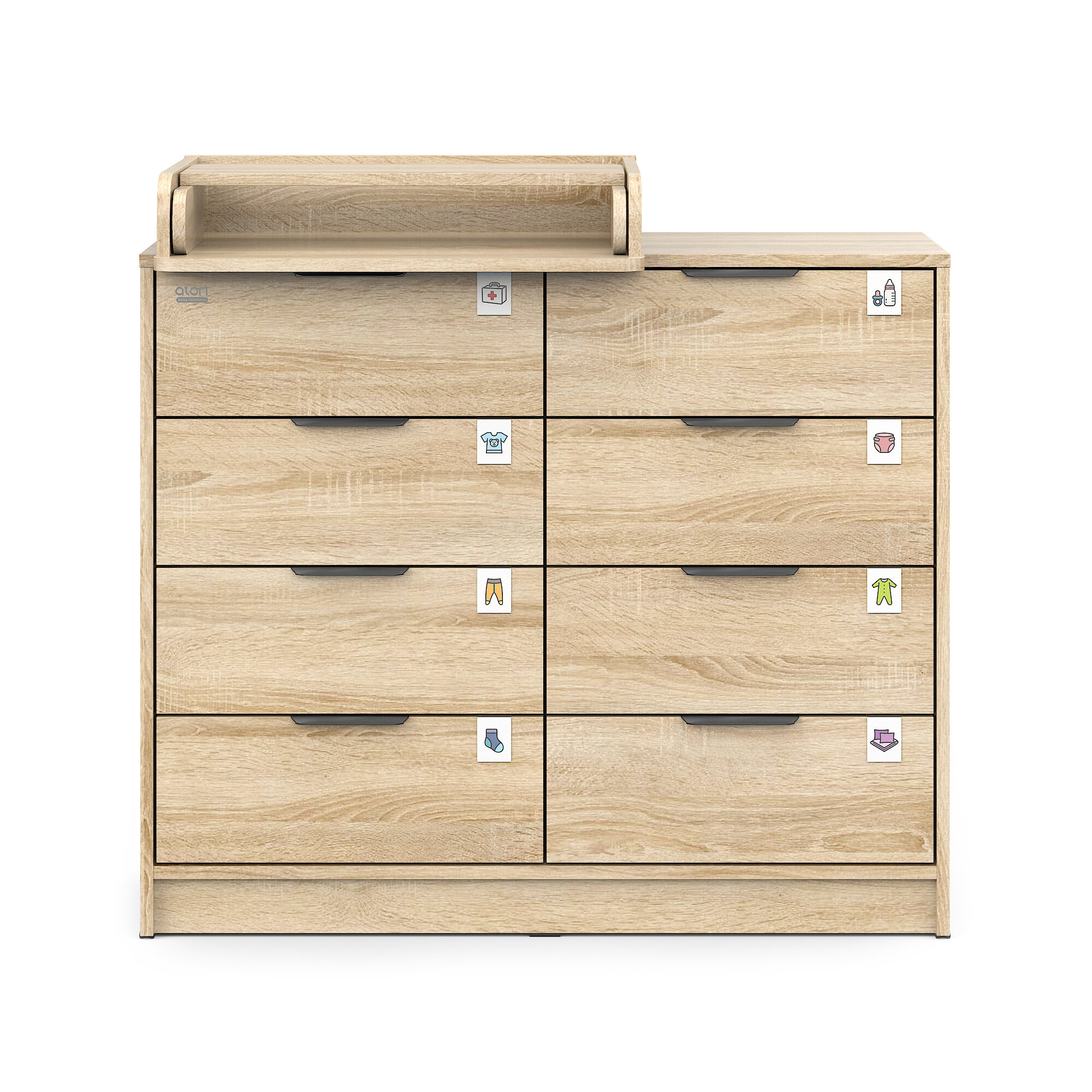 Комод пеленальный aton LEO, 5 ящиков с органайзером, дуб сонома
