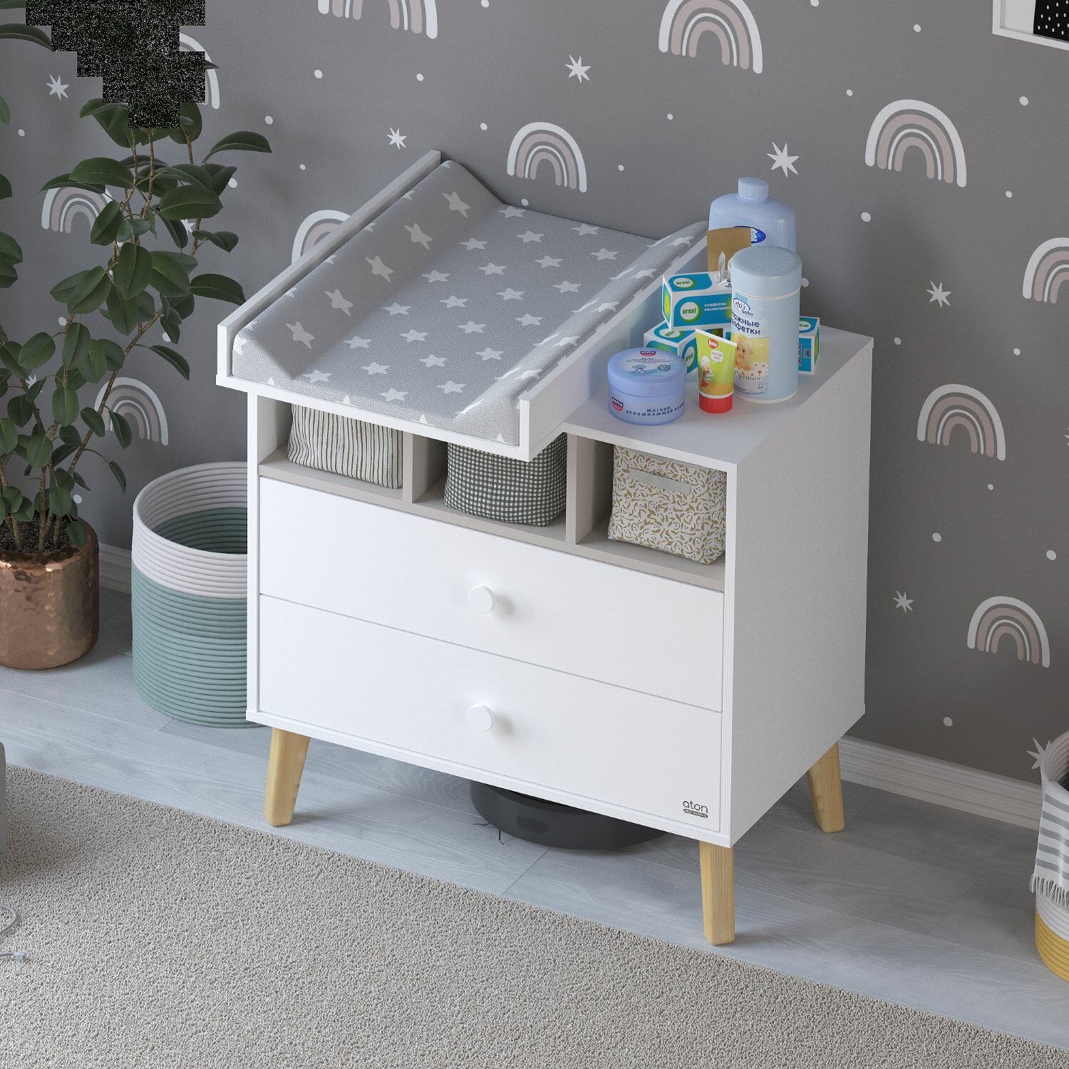 Комод пеленальный Атон "Felix", белый/серый, 80,6х57,2х96,4 см со съемным пеленальным столиком