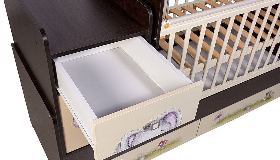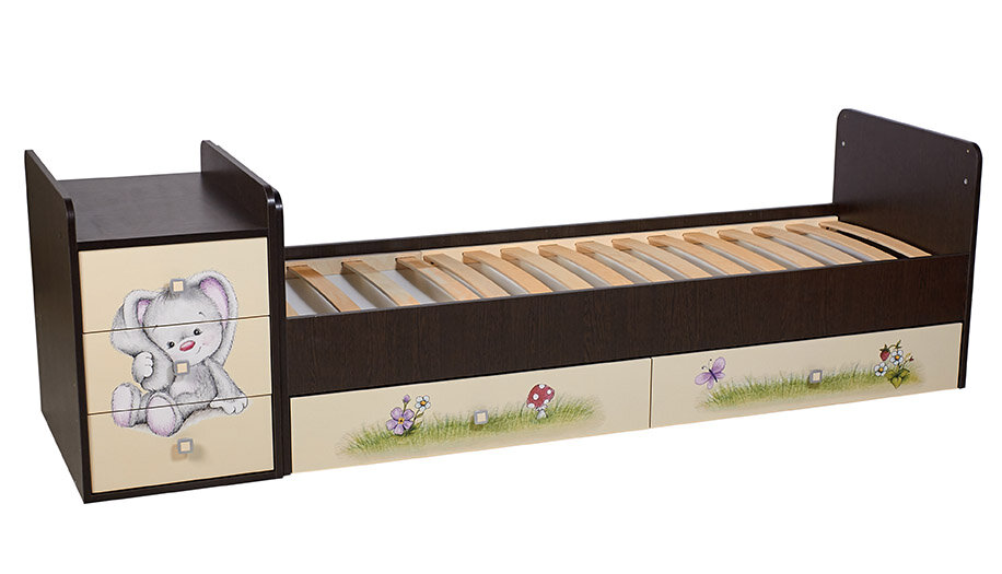 Кроватка-трансформер детская Фея 1100 Зайчонок, венге-бежевый