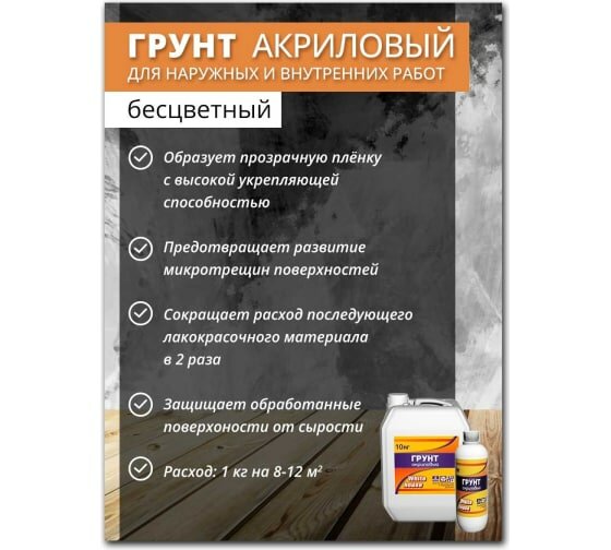 Грунтовка акриловая глубокопроникающая для наружных и внутренних работ 1 кг