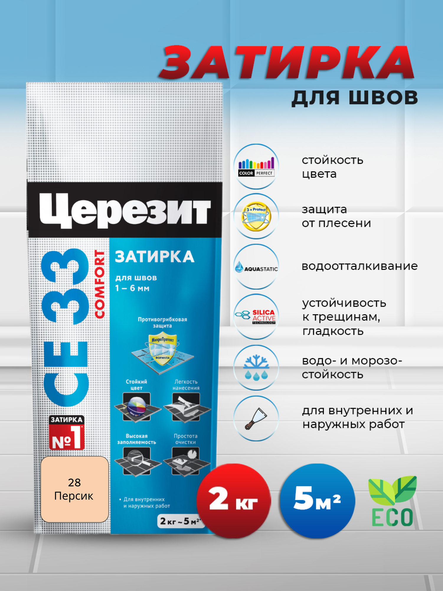 Затирка церезит / CERESIT CE 33 Comfort, 2 кг, персик 28