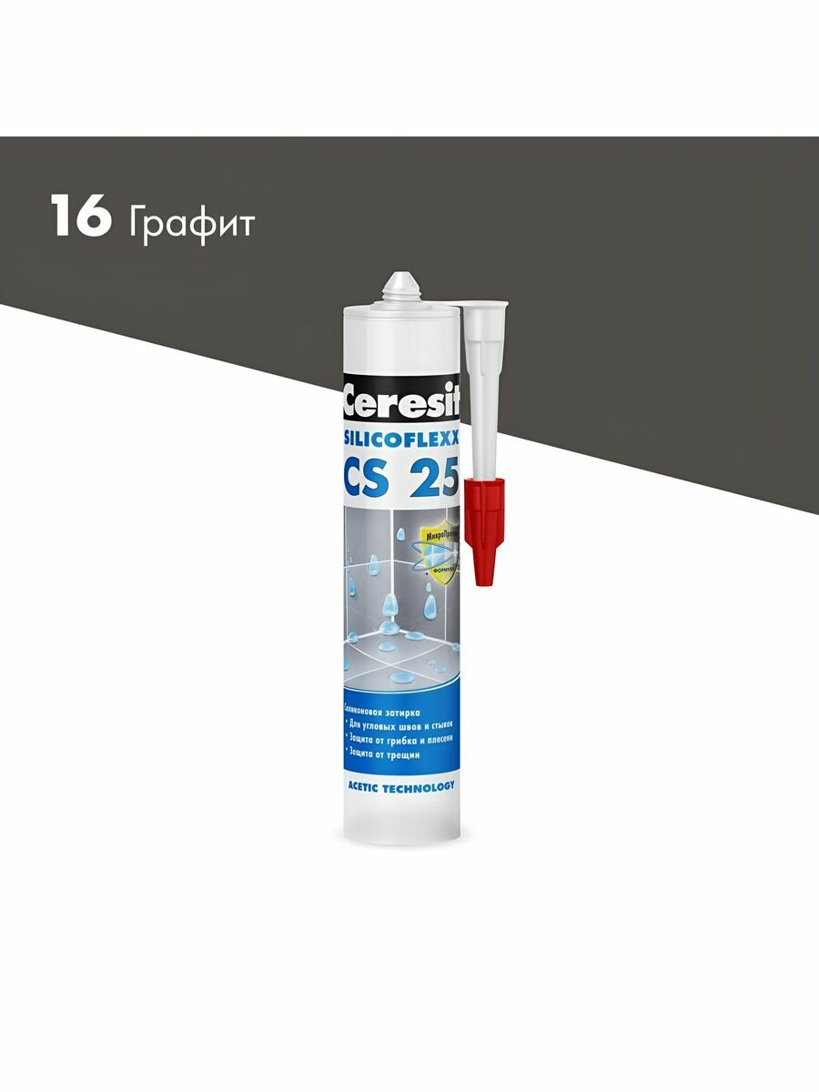 Купить Затирка-герметик силиконовая Церезит CS 25 №16 "Графит", 280мл