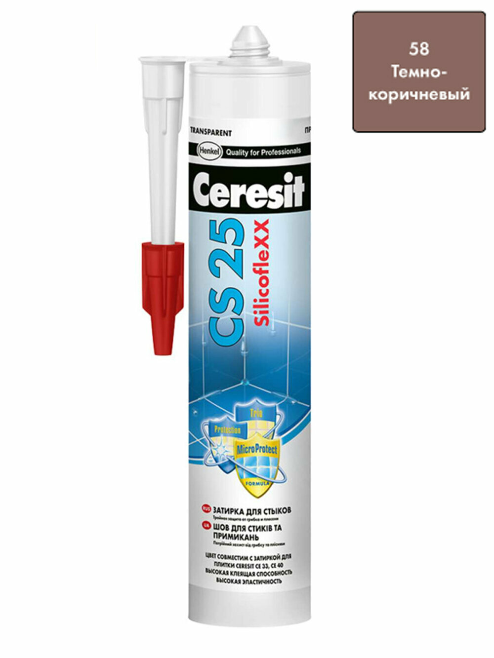 Купить Силиконовая затирка-герметик Церезит CS 25 темно-коричневый №58, 280 мл