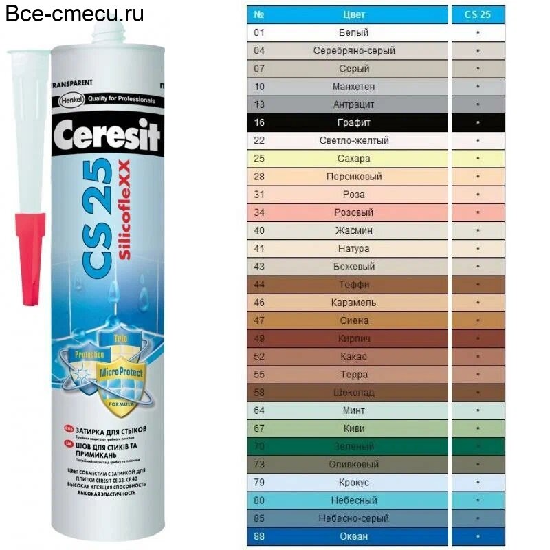 Ниже Вы можете прочитать отзывы на Ceresit CS 25 №01 белый Силиконовая затирка-герметик 280 мл, ознакомится с подробными характеристиками, посмотреть интересные обзоры и фотографии на Ceresit CS 25 №01 белый Силиконовая затирка-герметик 280 мл.