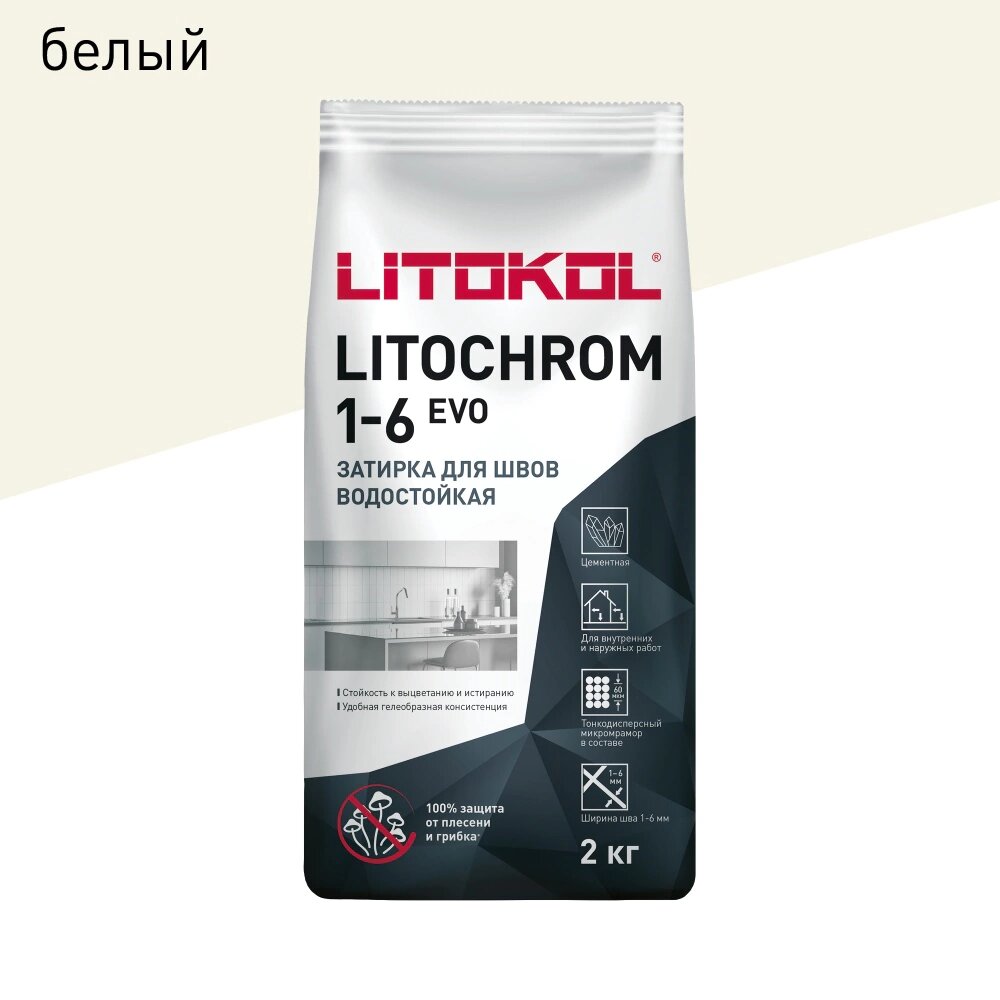 Купить Затирка цементная Litokol Litochrom Evo 1-6 мм LE.200 белый 2 кг