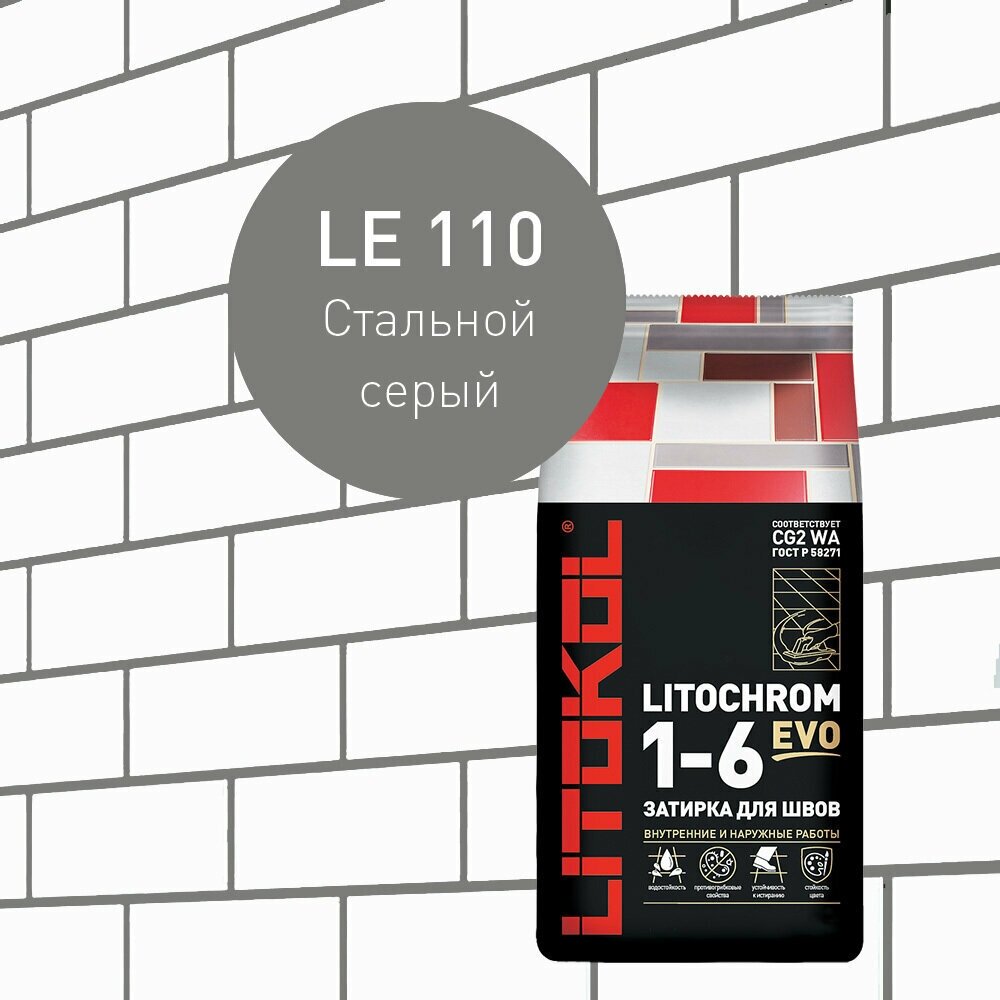 Купить Затирка LITOKOL LITOCHROM 1-6 EVO LE.110 Cтальной серый 5 кг