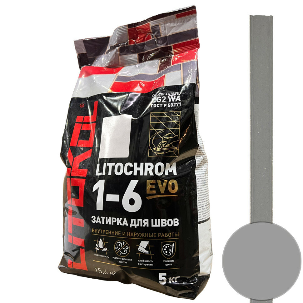 Затирочная Смесь Litokol Litochrom 1-6 Evo 5кг LE.125 Дымчатый Серый, Цементная для Затирки Швов Плитки от 1 до 6 мм / Литокол Литохром Эво.