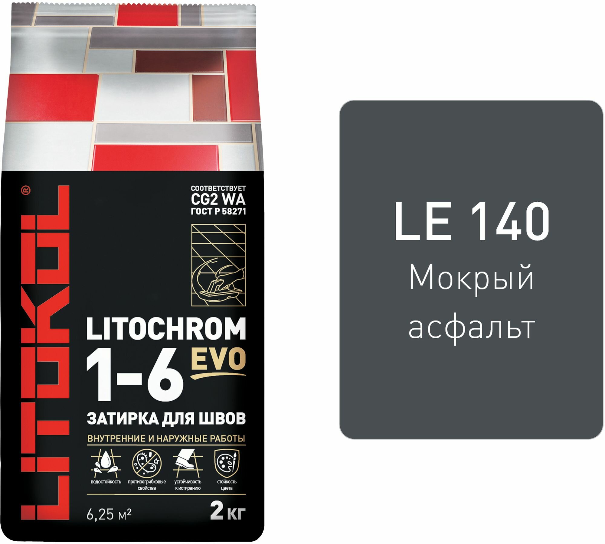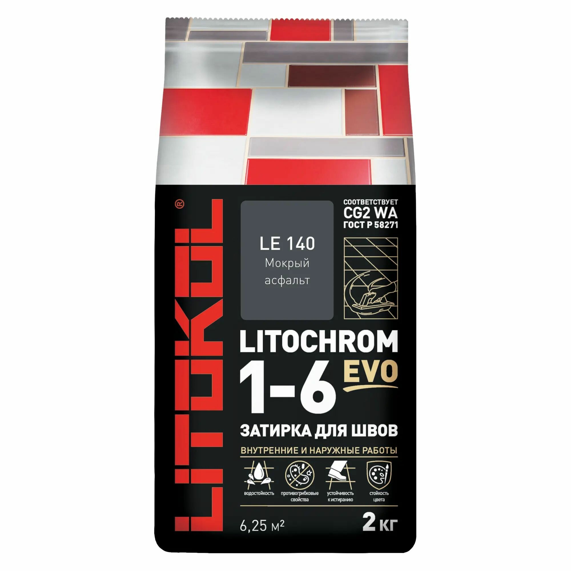 Купить Затирка цементная LITOKOL LITOCHROM 1-6 EVO цвет LE 140 мокрый асфальт 2 кг