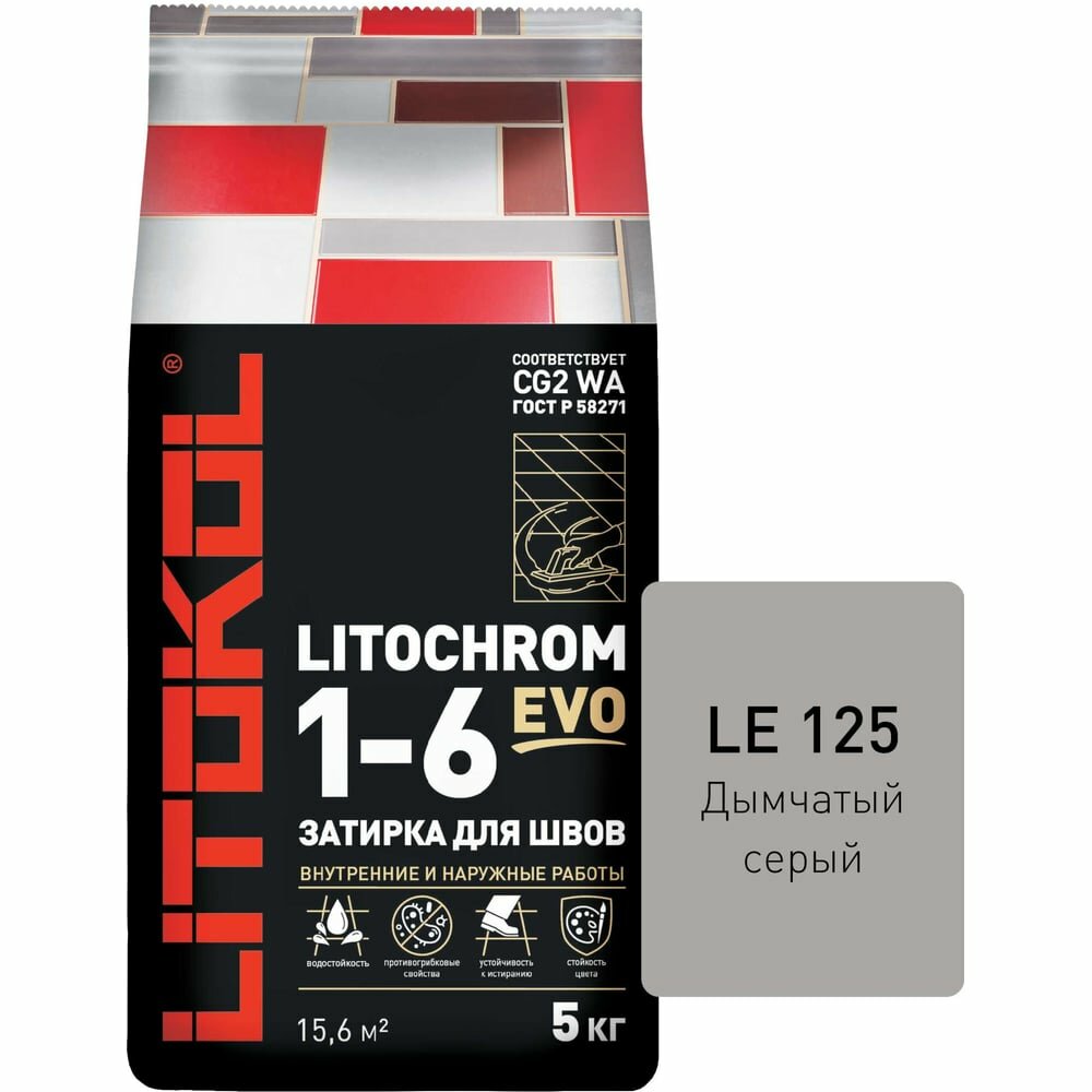Затирка для плитки Litokol Litochrom 1-6 EVO LE.125 дымчатая серая 5 кг