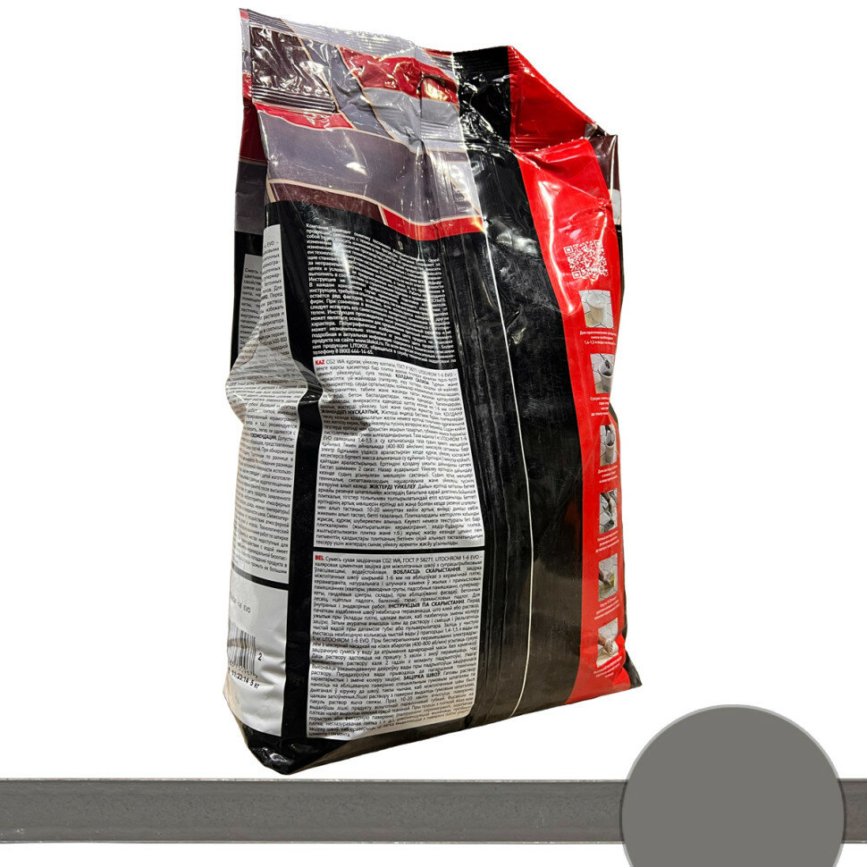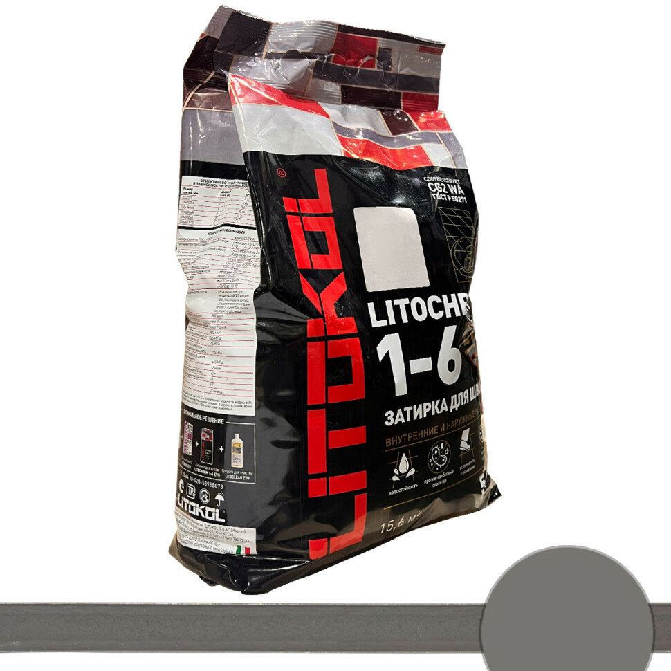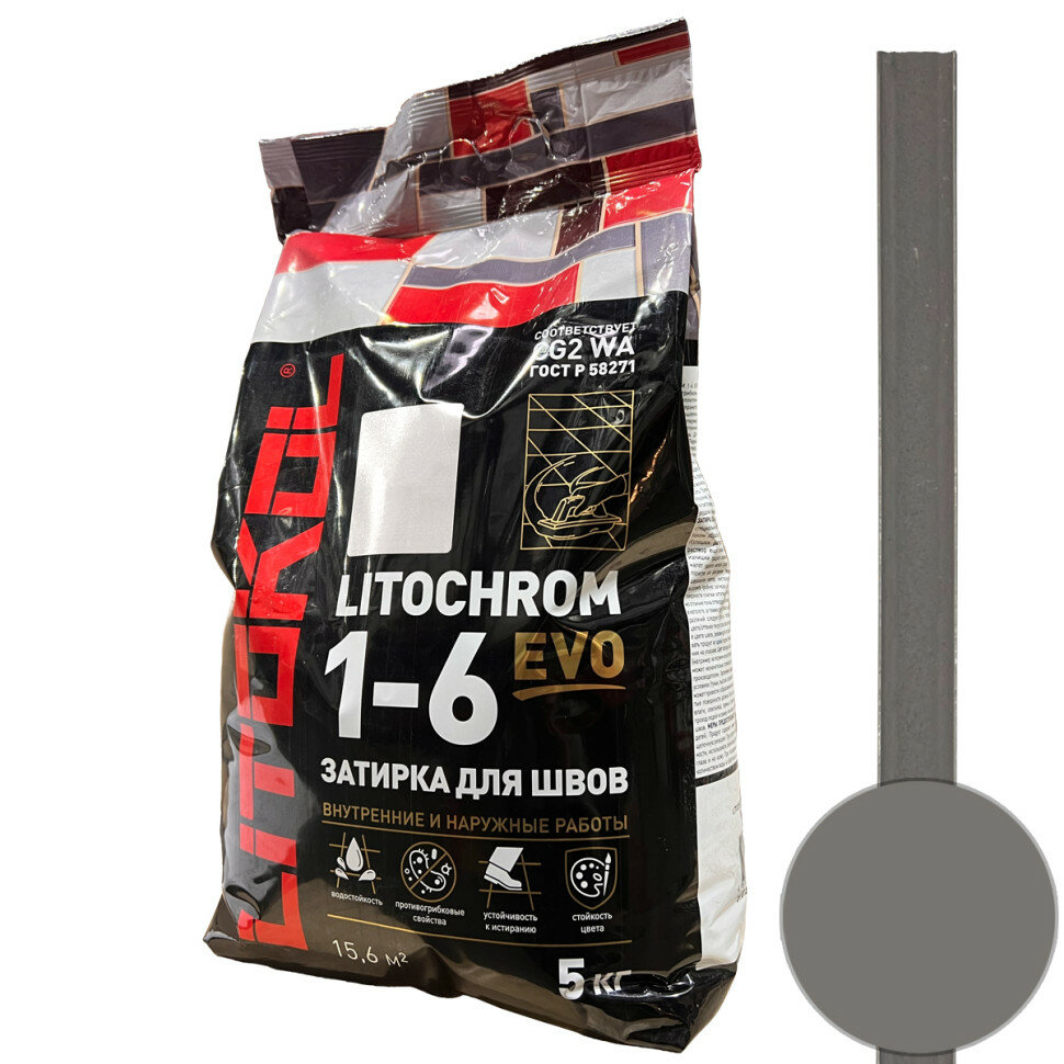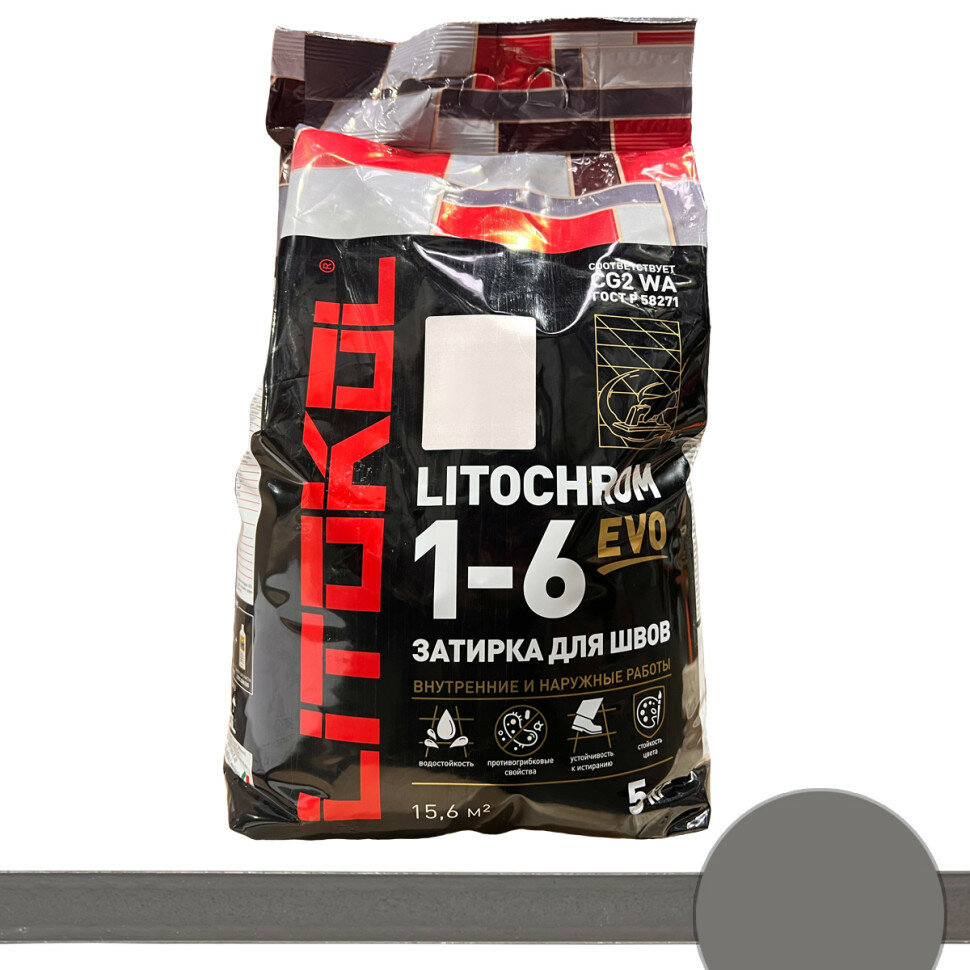 Затирочная Смесь Litokol Litochrom 1-6 Evo 5кг LE.125 Дымчатый Серый, Цементная для Затирки Швов Плитки от 1 до 6 мм / Литокол Литохром Эво.
