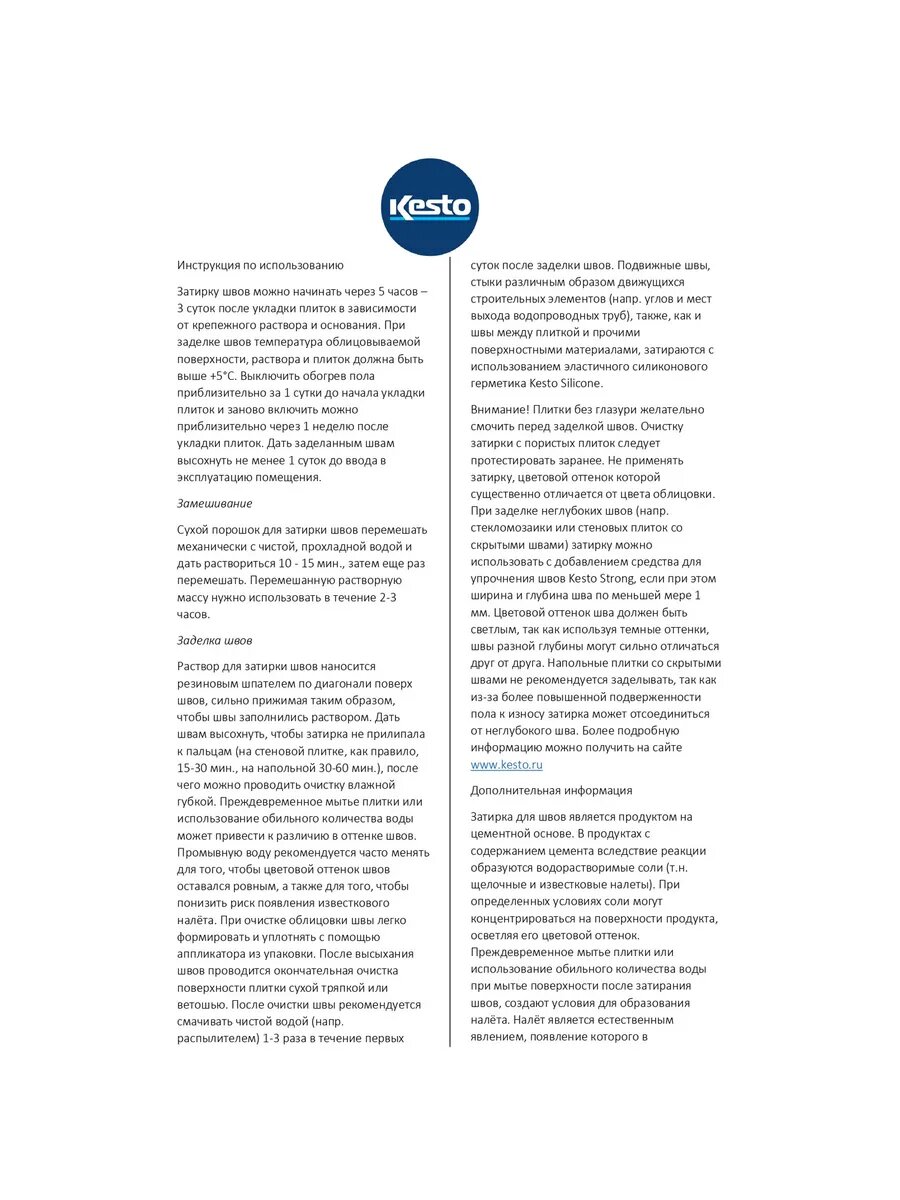 Затирка для швов Kesto Saumalaasti №10, 1 кг, белый