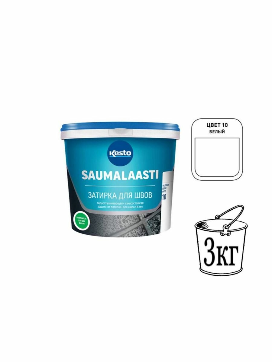 Купить Затирка для плитки Kesto Saumalaasti №10, белый, 3 кг
