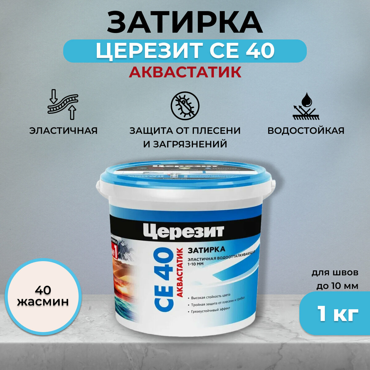 Купить Затирка для швов до 10 мм водоотталкивающая церезит СЕ 40 Aquastatic 40 жасмин 1 кг