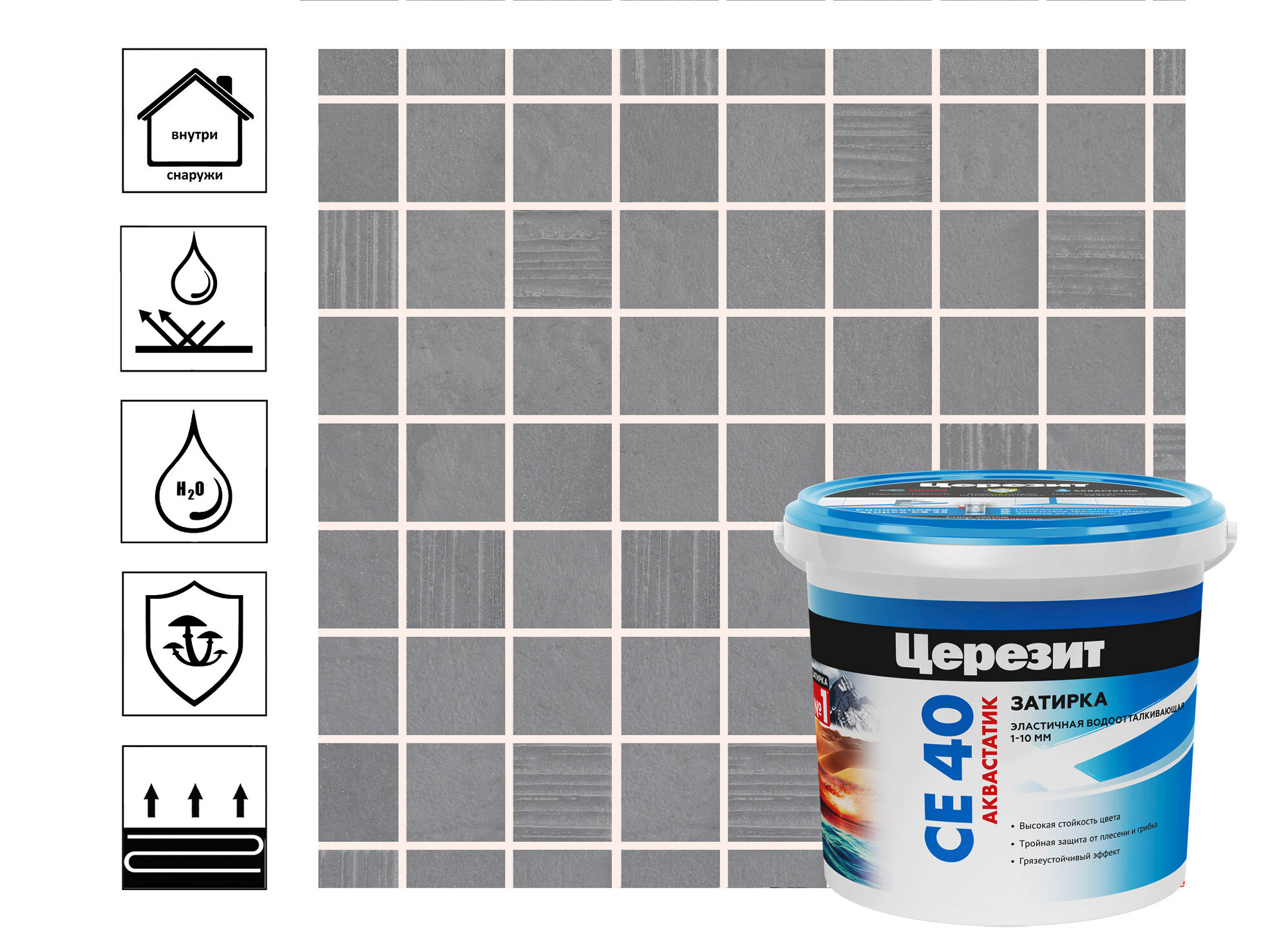 Затирка цементная для швов Церезит CE 40 Aquastatic эластичная водоотводящая 2 кг, светло-серый
