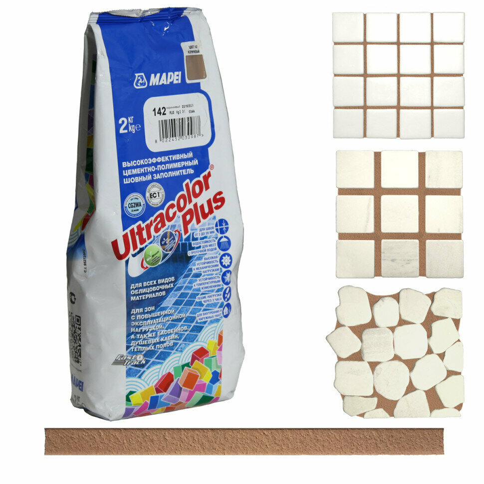 Купить Затирка для плитки Mapei Ultracolor Plus №142 коричневая 2 кг