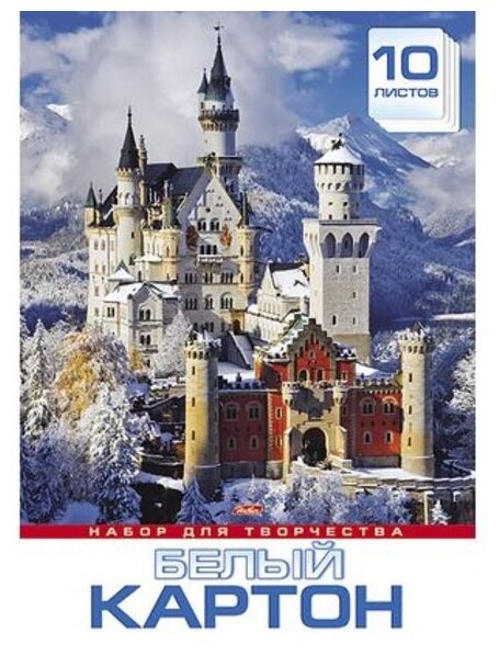 Купить Набор картона Белый 10л А3ф 297х420мм в папке-Замок в горах-