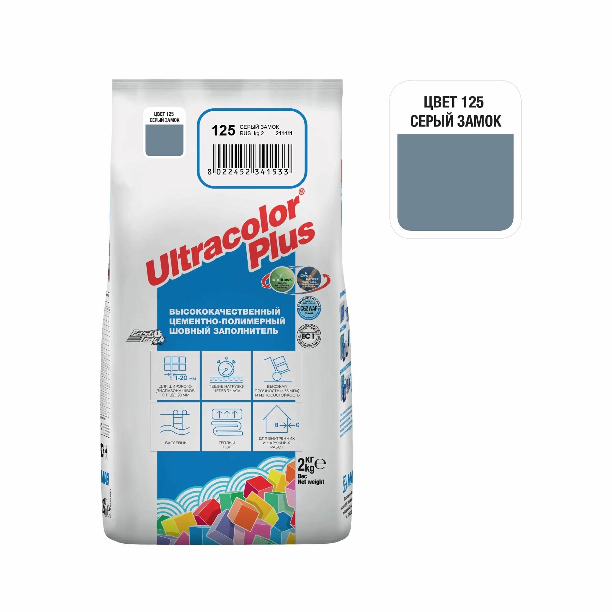 Купить Затирка для плитки Mapei Ultracolor Plus №125 серый замок 2 кг