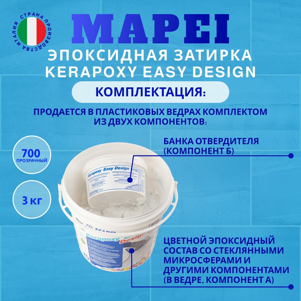 Купить Эпоксидная затирка Mapei Kerapoxy Easy Design, 3 кг, 700 Бесцветный